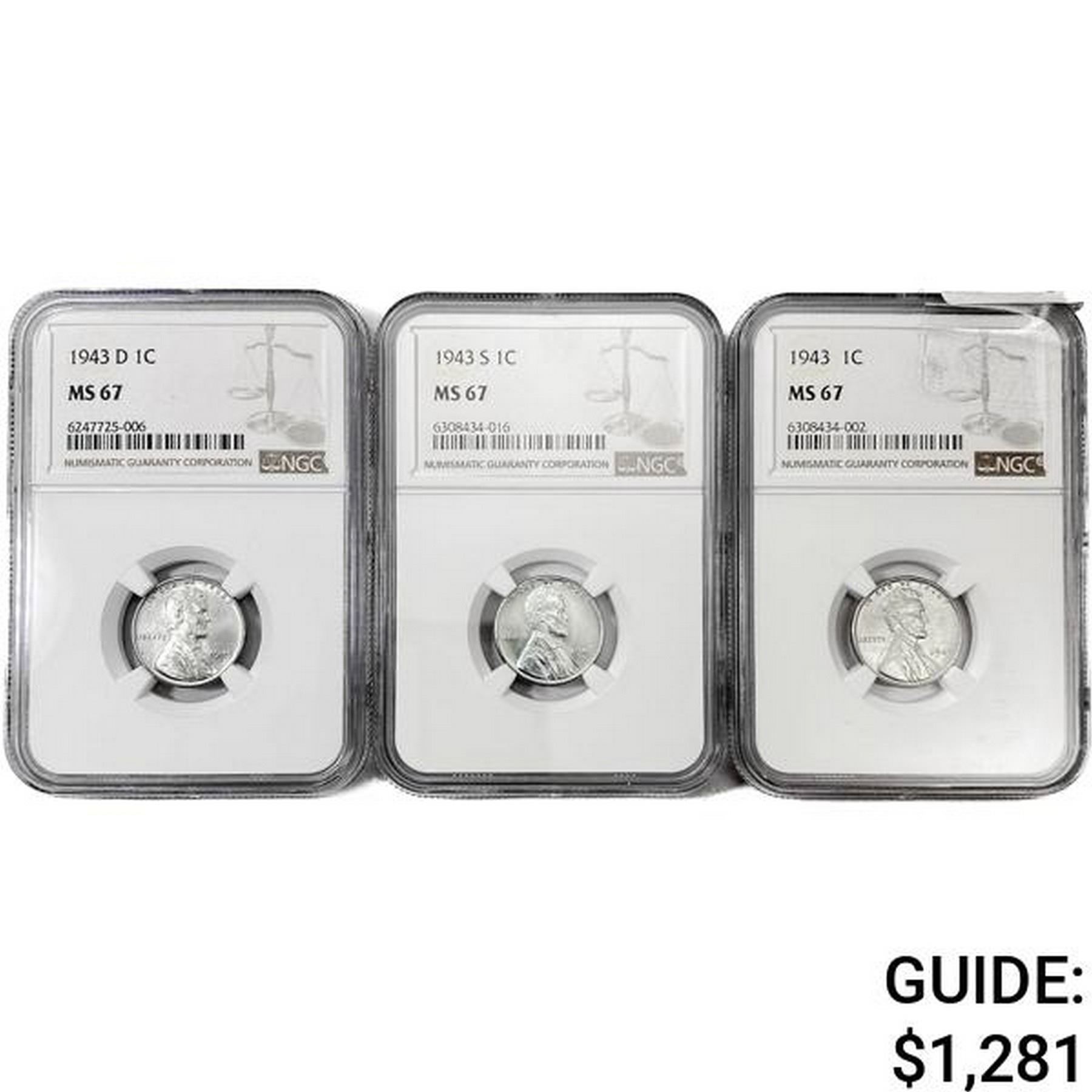 1943 [D,S] Set of 3 Wheat Cent NGC MS67