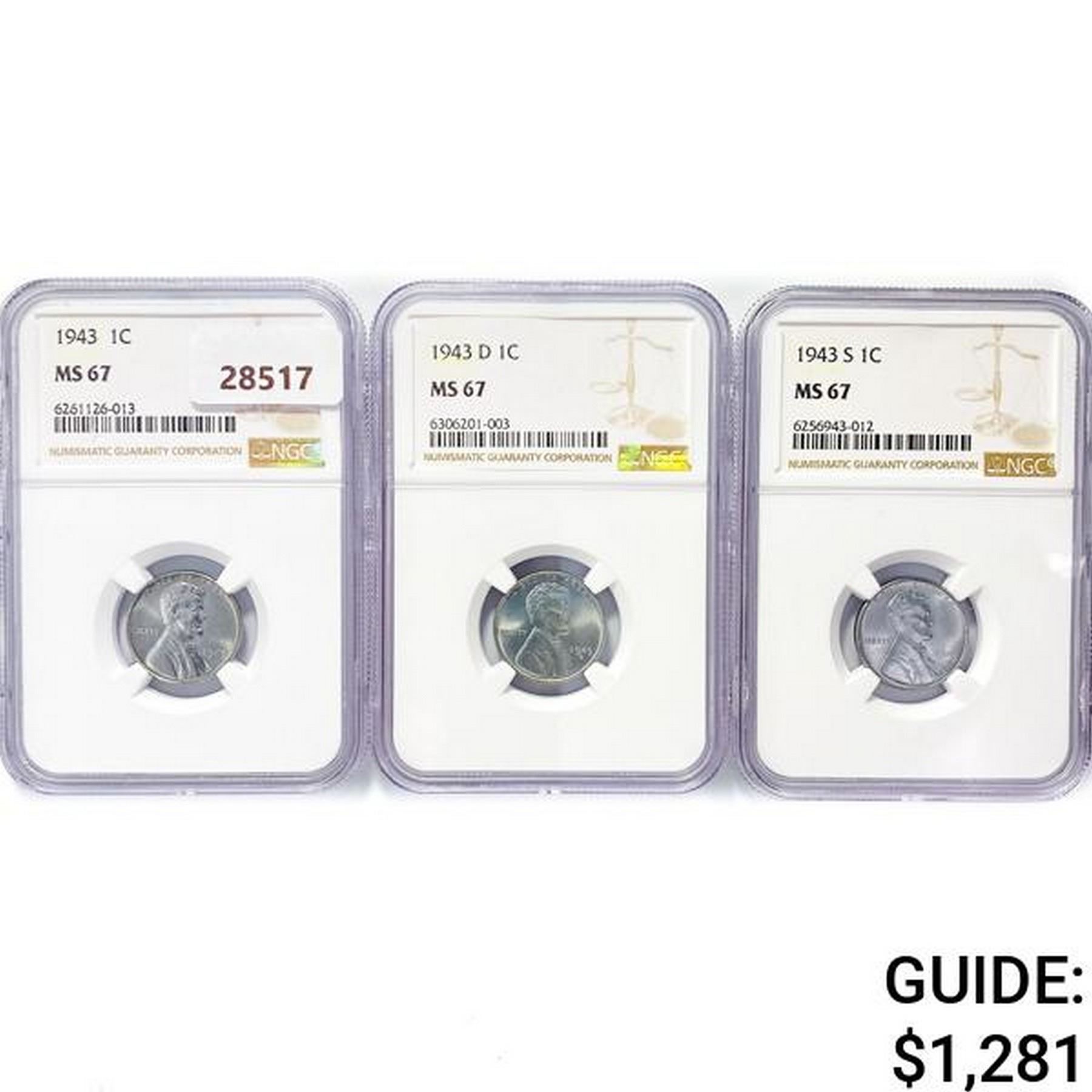 1943 [D,S] Set of 3 Wheat Cent NGC MS67