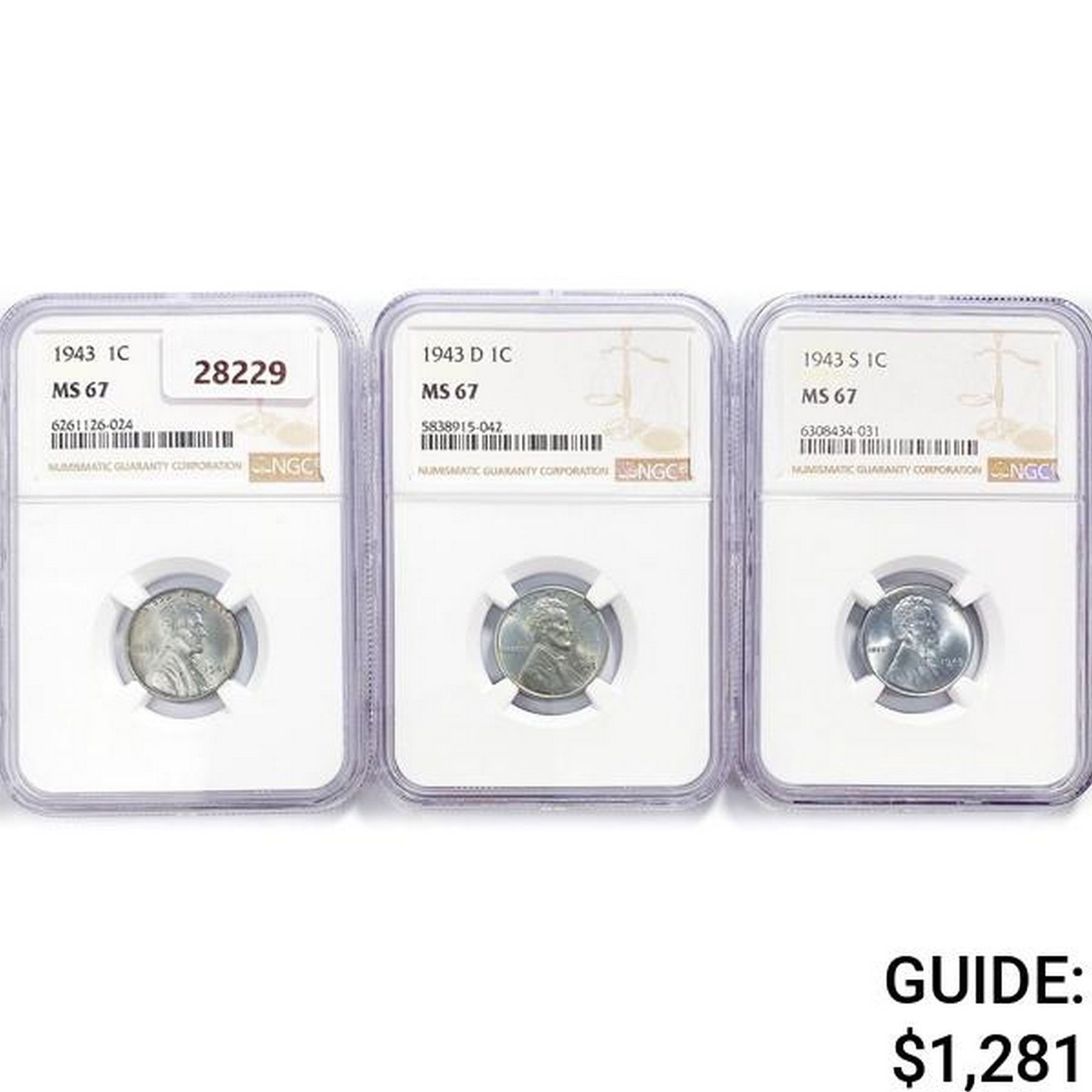 1943 [D,S] Set of 3 Wheat Cent NGC MS67