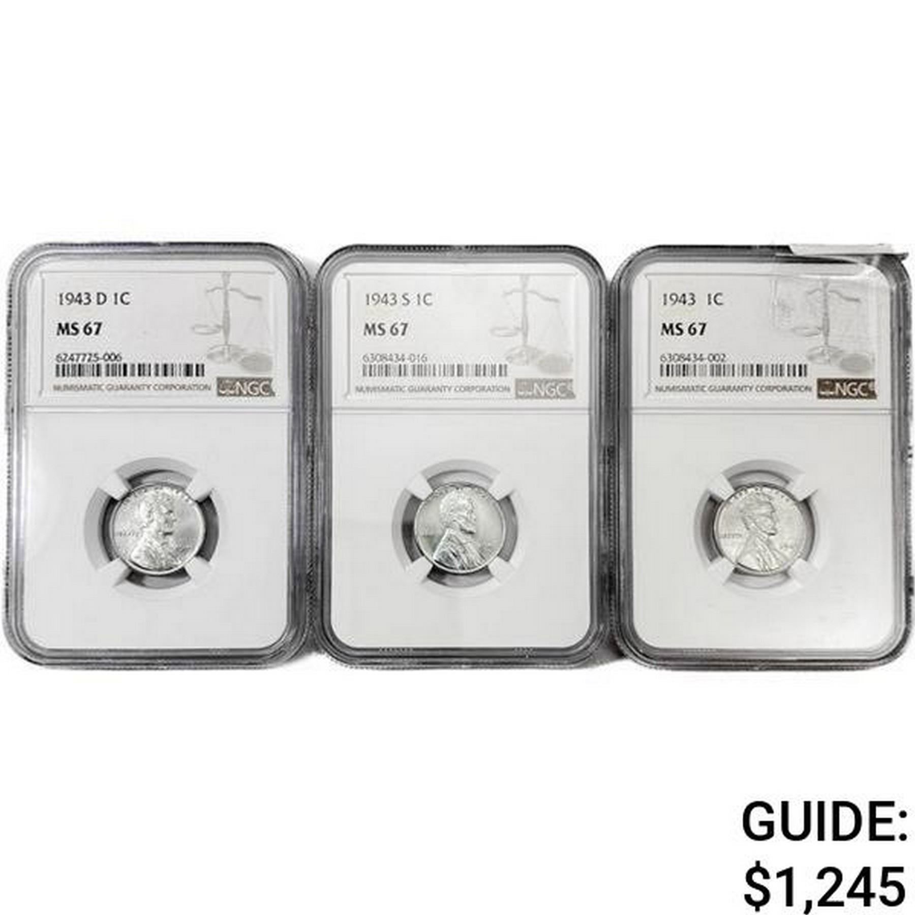 1943 [D,S] Set of 3 Wheat Cent NGC MS67