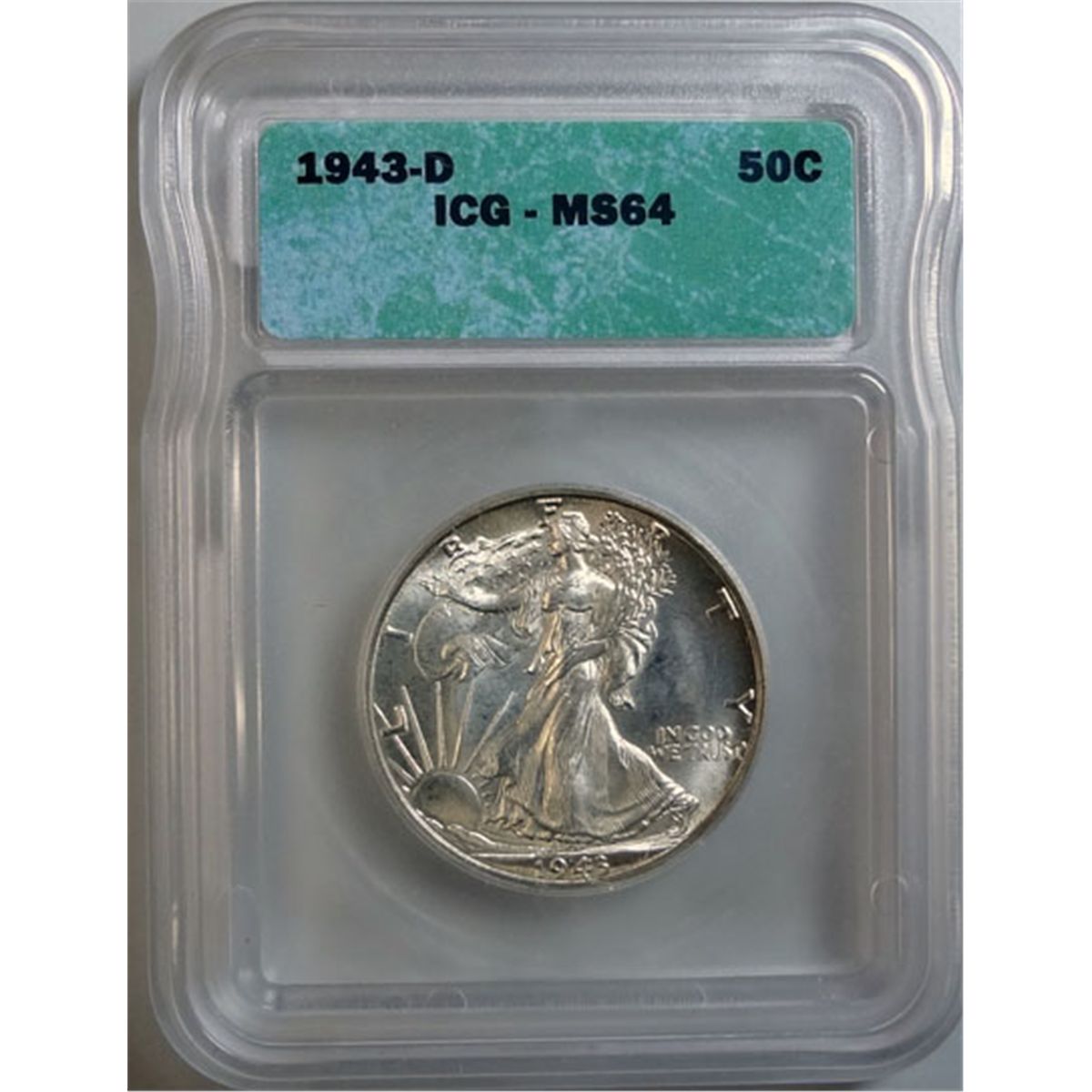 1943-D WALKING LIBERTY HALF DOLLAR ICG MS-64