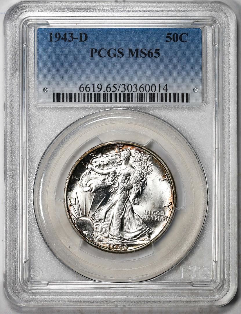 One 1943-D Walking Liberty Half Dollar Coin PCGS MS65. PCGS Graded.