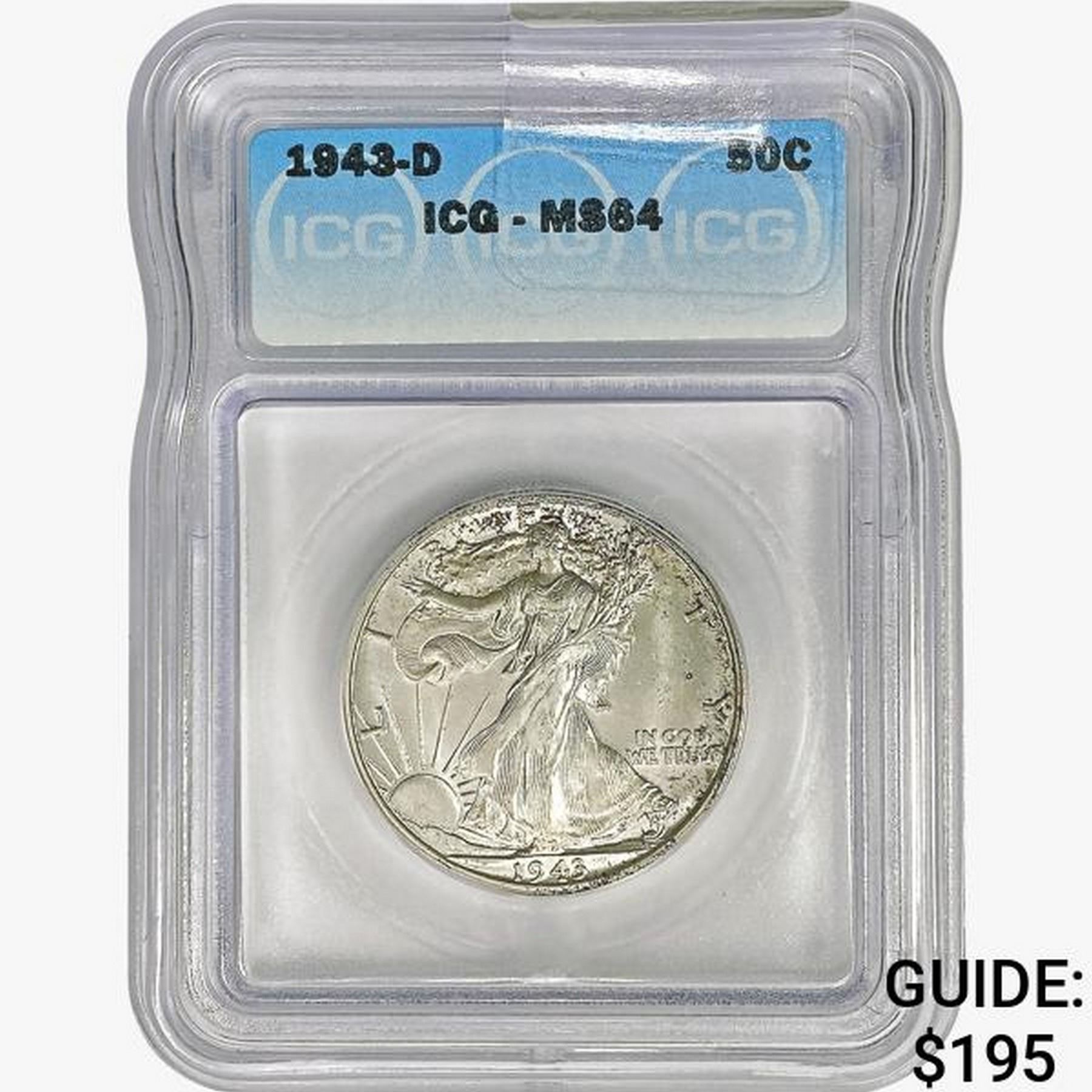 1943-D Walking Liberty Half Dollar ICG MS64