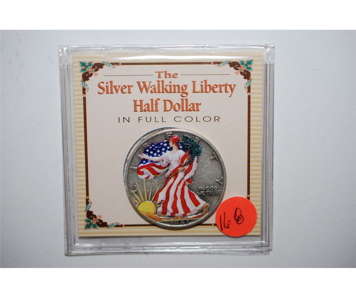 1943-D Walking Liberty Half Dollar In Full Color With History; EST. $15-20
