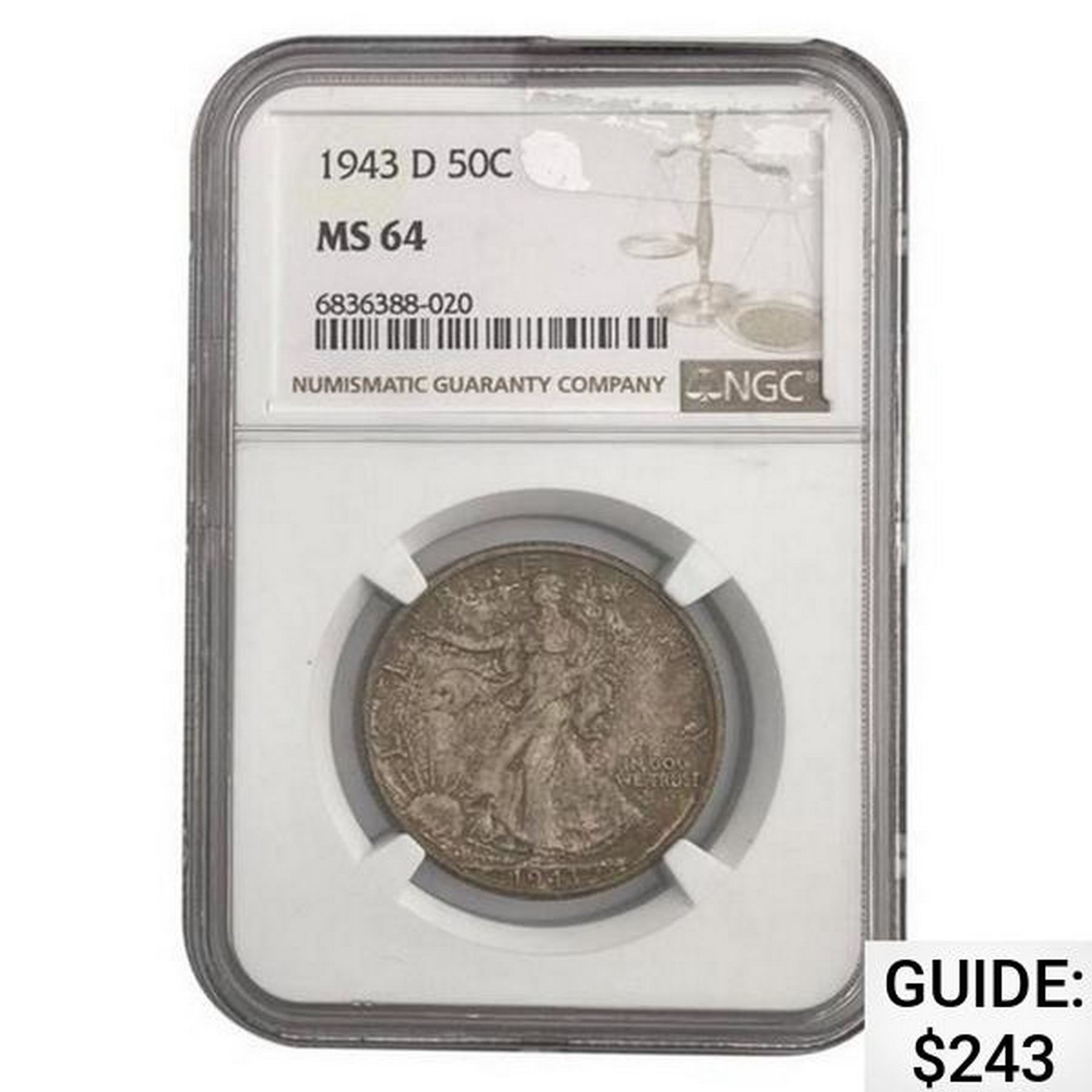 1943-D Walking Liberty Half Dollar NGC MS64