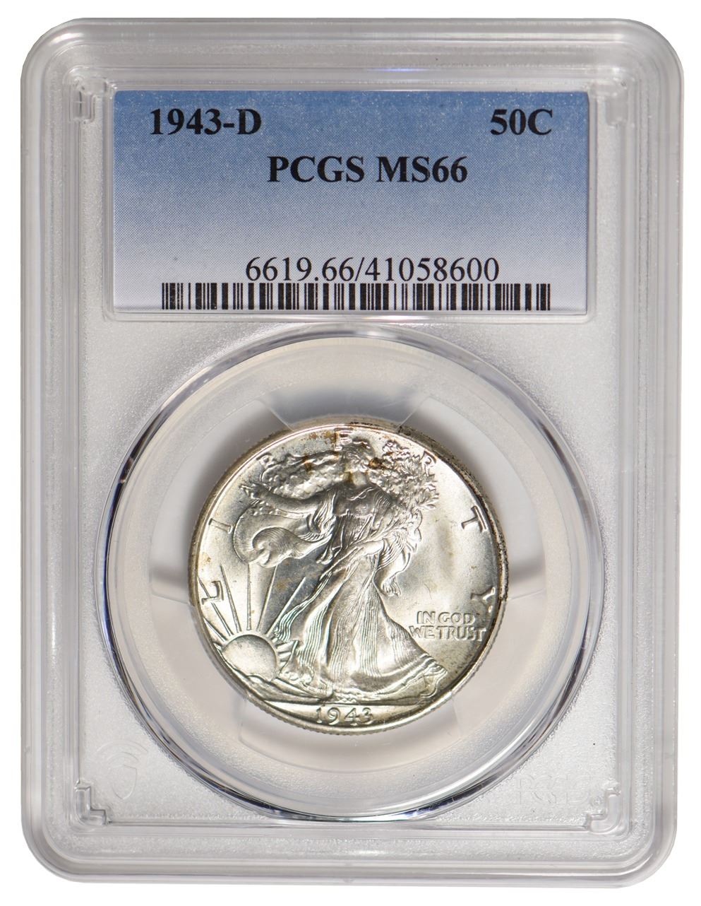 One 1943-D Walking Liberty Half Dollar PCGS MS66.