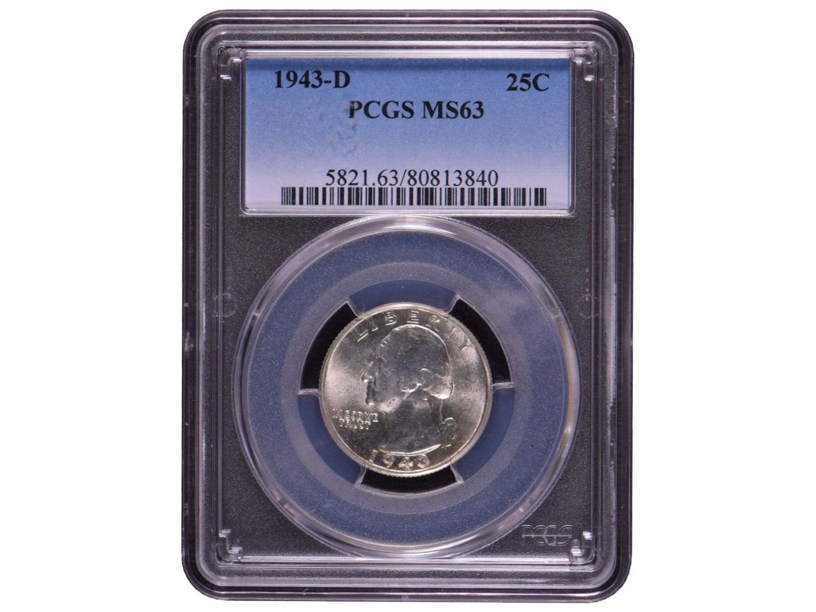 One 1943-D Washington Quarter Coin PCGS MS63.