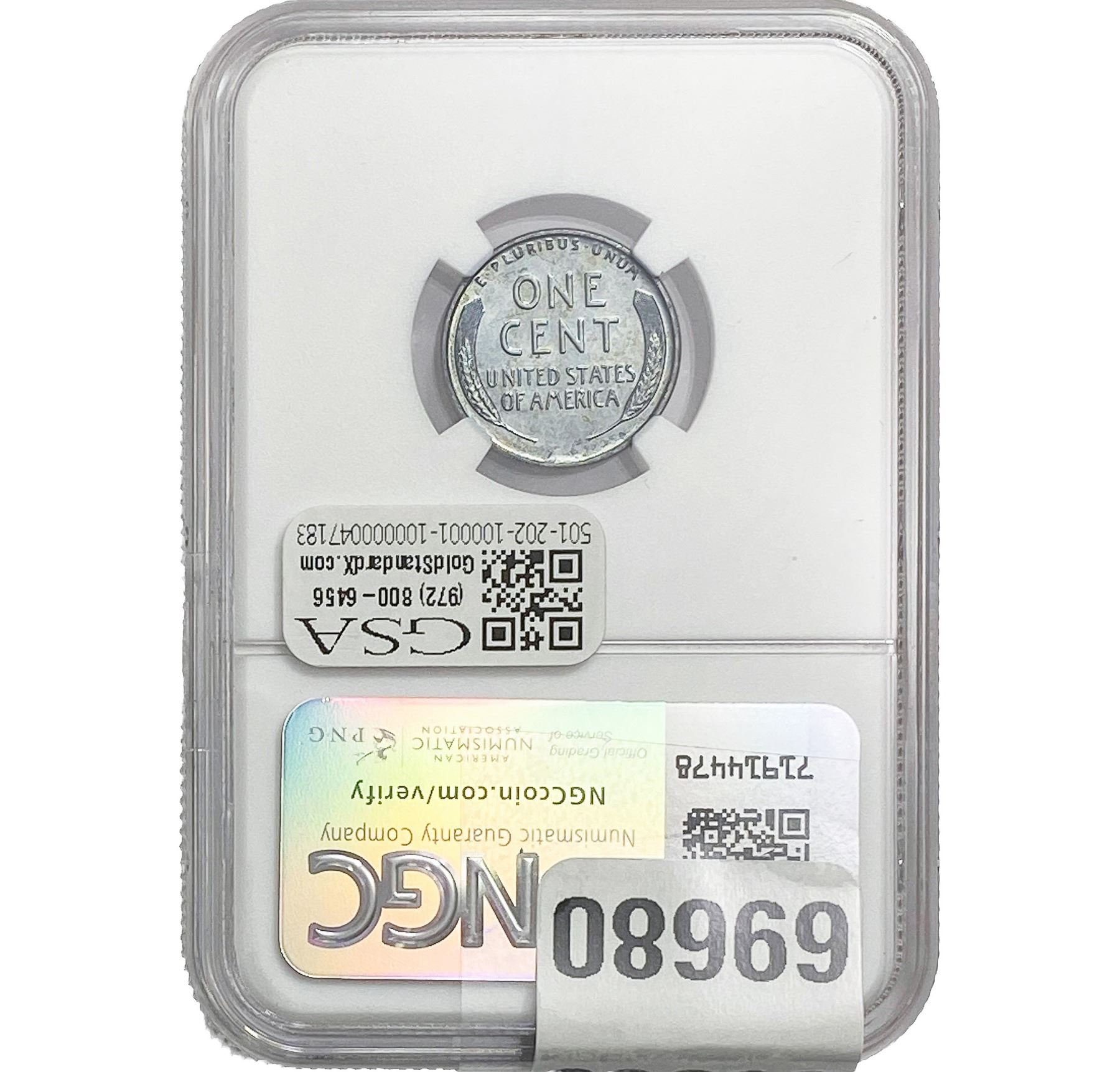 e. Coins sold referencing a third-party grading service are sold “AS IS” without any express or implied warranty, except for a guarantee by GSA that they are genuine. Removal or alteration of the holder, voids all of Bidder’s claims concerning that Product. Certain warranties may be available from the grading services and Bidders are referred to them for further details: Numismatic Guaranty Corporation (NGC), PO Box 4776, Sarasota, FL 34230, www.ngccoin.com/services/writtenguarantee.asp; Professional Coin Grading Services (PCGS), PO Box 9458, Newport Beach, CA 92658, www.pcgs.com/guarantee.html; ANACS, 6555 S. Kenton St., Ste. 303, Englewood, CO 80111; and Independent Coin Grading Co. (ICG), 7901 East Bellview, Ave., Suite 50, Englewood, CO 80111.