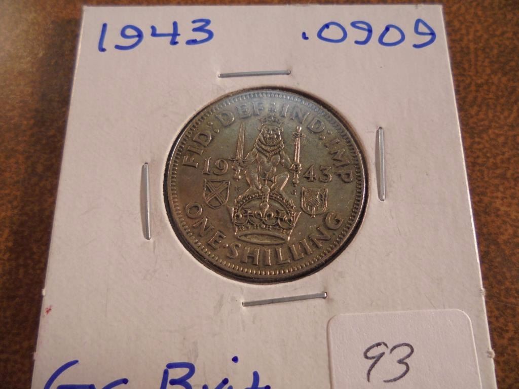 1943 GREAT BRITAIN SILVER SHILLING .0909 OZ. ASW