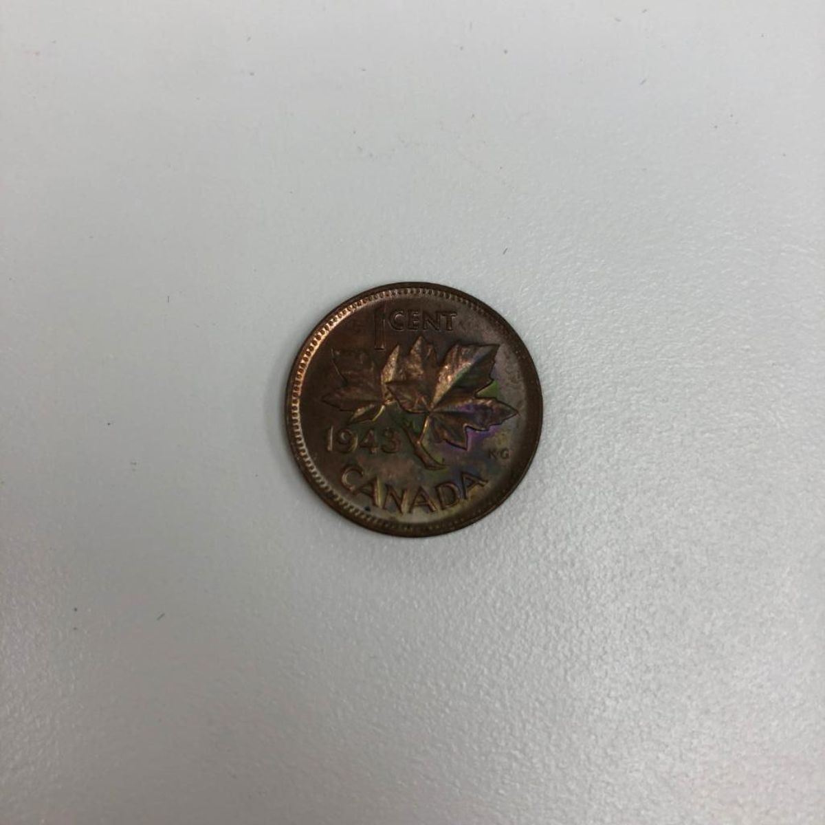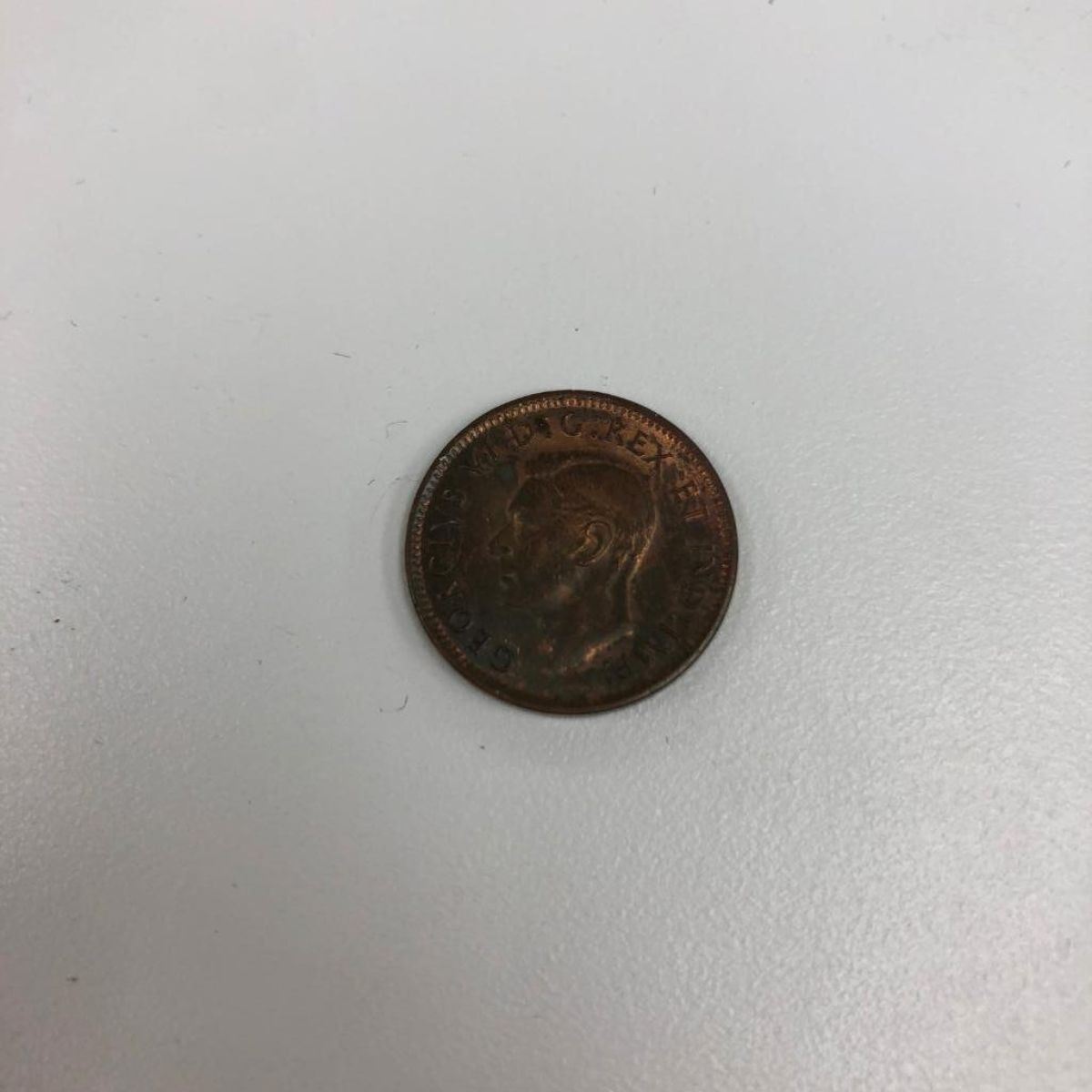 Obverse A portrait of King George VI facing left, surrounded with the inscription "GEORGIVS VI D:G:REX ET IND:IMP:" meaning: George V, by the grace of God, the King and Emperor of India Lettering: GEORGIVS VI D:G:REX ET IND:IMP: Engraver: Thomas Humphrey Paget Reverse A maple leaf twig is surrounded with the face value and the inscription "CANADA". Lettering: 1 CENT 1937 CANADA Engraver: George Kruger Gray Specifications CountryCanada Type: Standard circulation coin Years: 1937-1947 Value: 1 Cent (0.01 CAD) Composition: Bronze Weight: 3.24 g Diameter: 19.05 mm Thickness: 1.65 mm Shape: Round