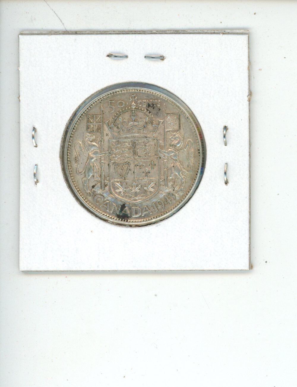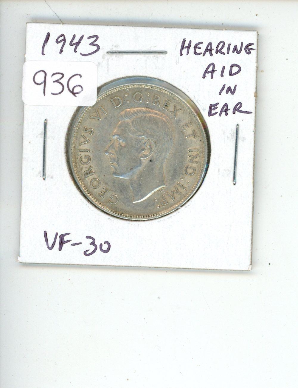 1943 George VI Silver 50 Cents. Hearing Aid in King’s Ear from Die Clash. World War II issue. VF-30. Nice.