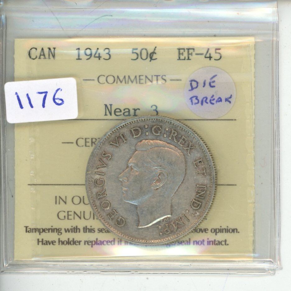 1943 ICCS Graded - Canadian Fifty Cent - Near 3 - EF45