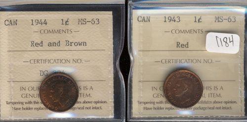 1943 ICCS MS63 Red, 1944 ICCS MS63 Red/Brown