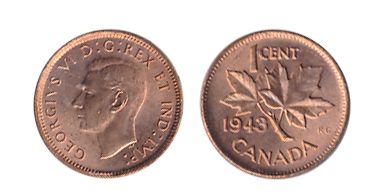 1943. ICCS Mint State-64. Red. 90% red luster.