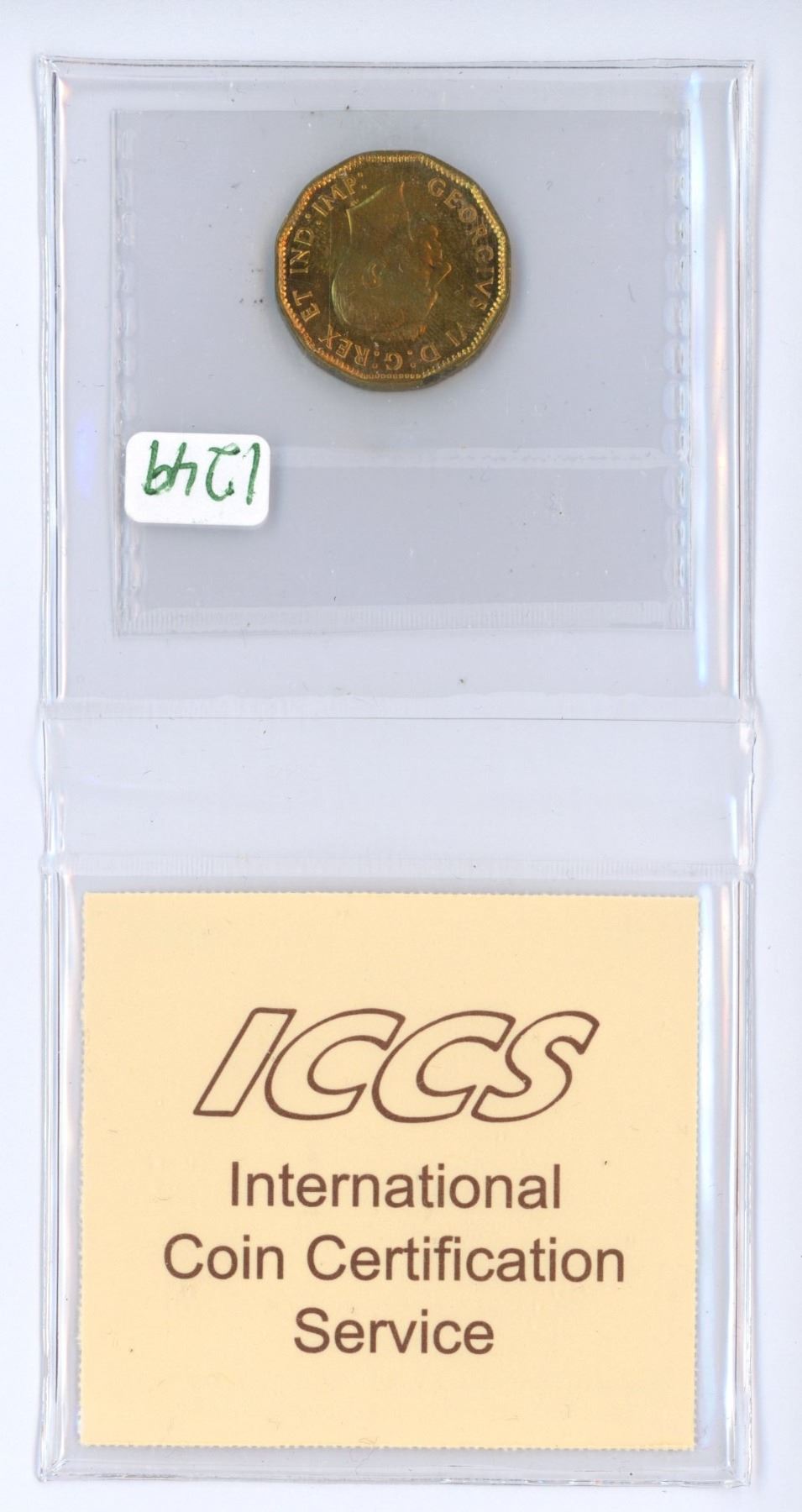 1943 ICCS graded, Canadian 5 cent coin - MS64