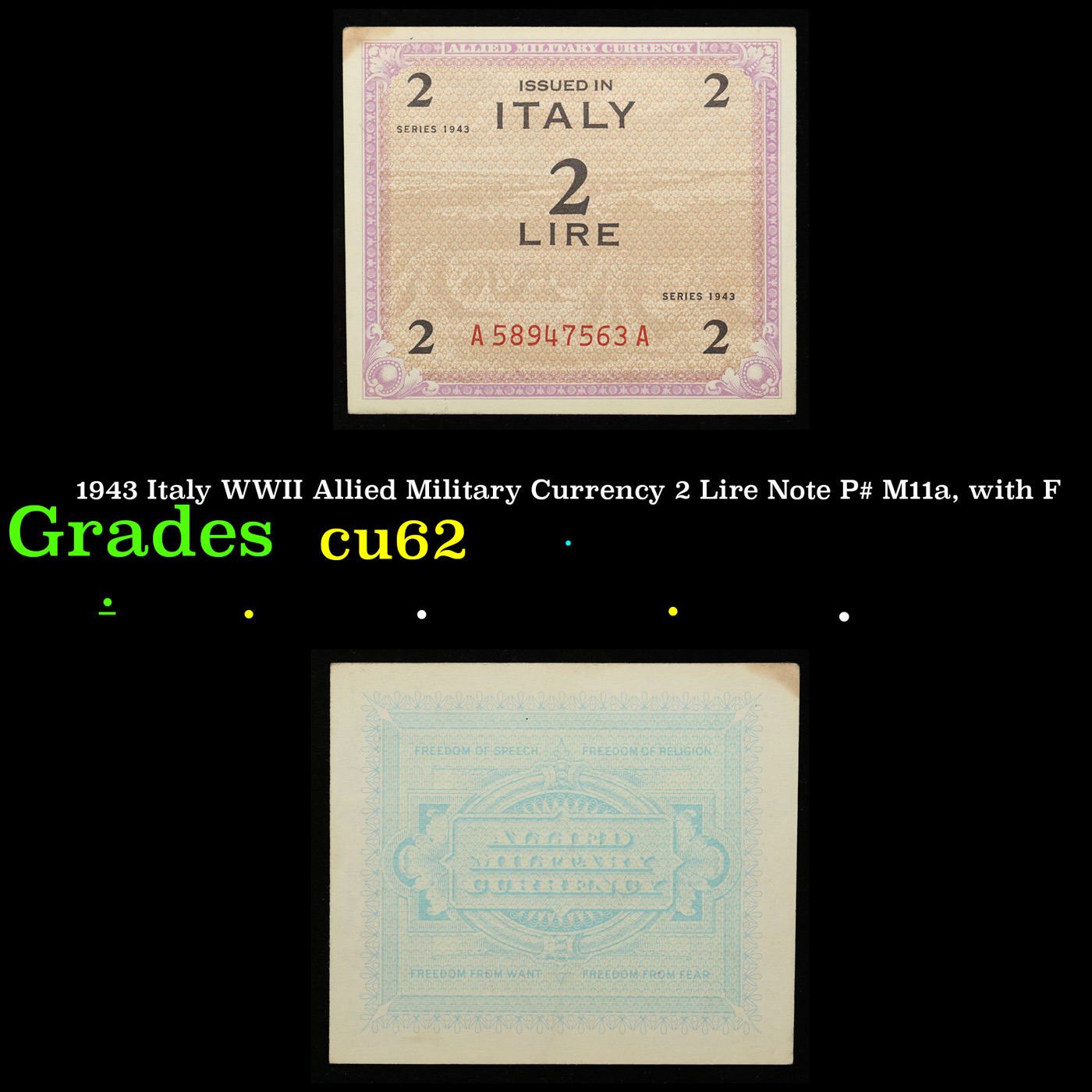 1943 Italy WWII Allied Military Currency 2 Lire Note P# M11a, with F Grades