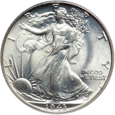1943 Liberty Walking Half Dollar. PCGS graded MS-67. A gorgeous blast white superb gem Walking Liberty. Pop 291; 5 finer in 68 (PCGS # 6618) .