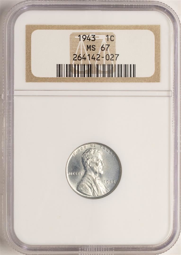 One 1943 Lincoln Steel Cent Coin NGC MS67. NGC Certified.