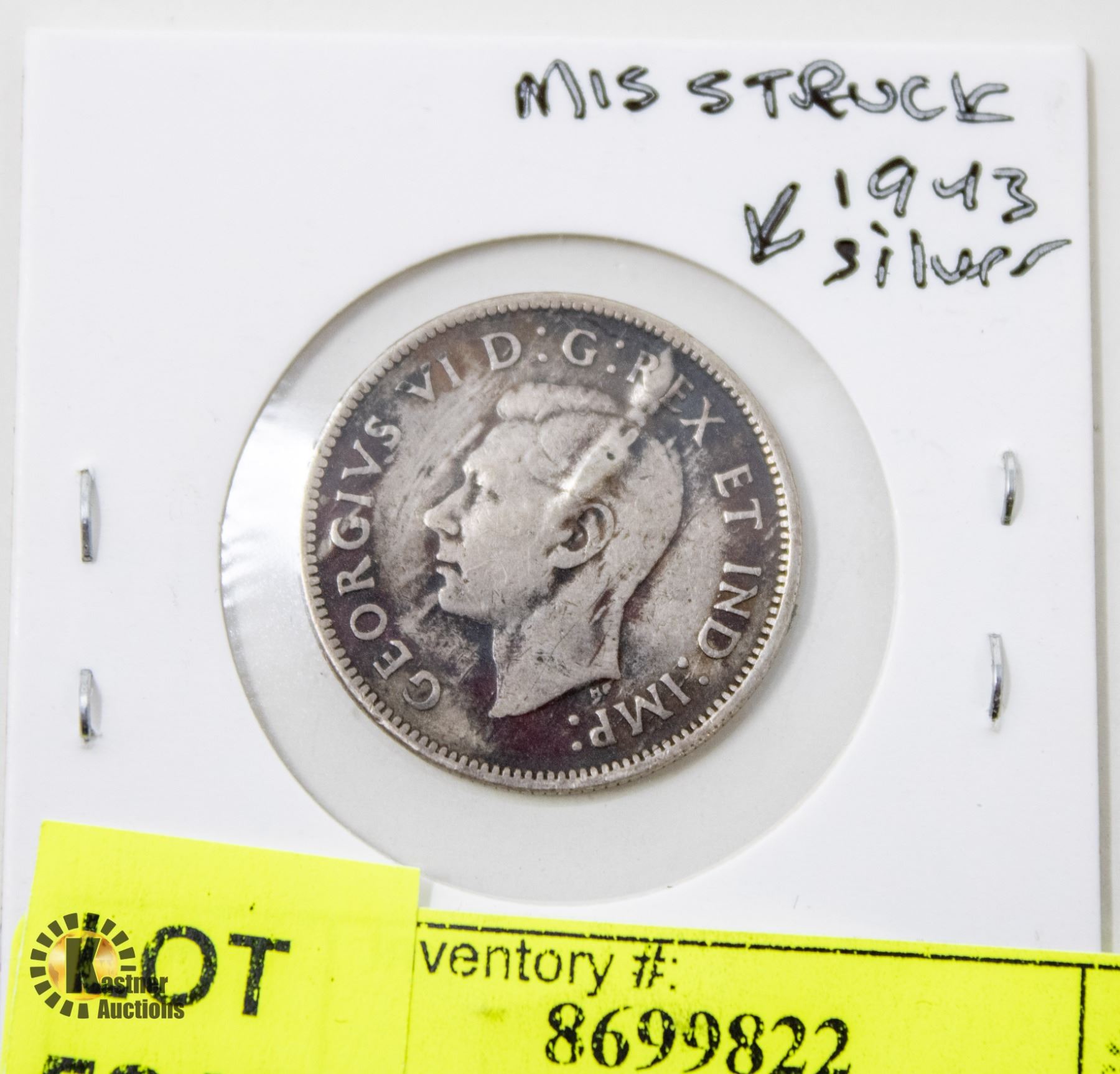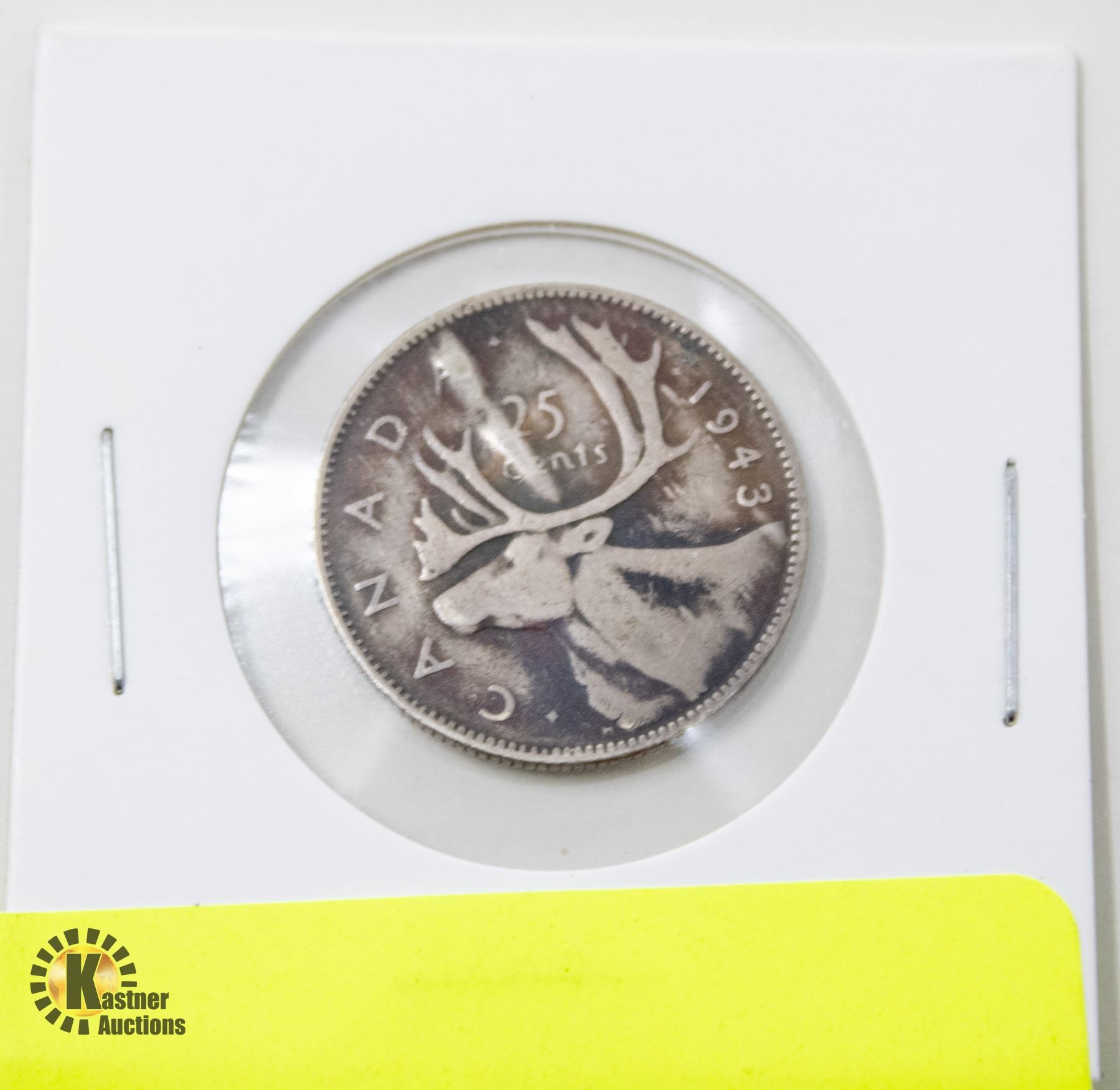 1943 MIS-STRUCK SILVER QUARTER CANADA