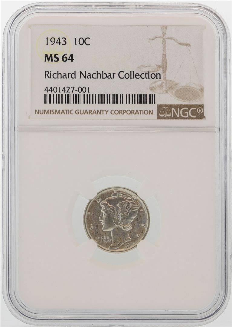 One 1943 Mercury Dime Coin NGC MS64. NGC Certified.