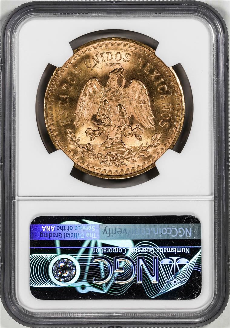 One 1943 Mexico 50 Pesos Gold Coin NGC MS65. NGC Certified.