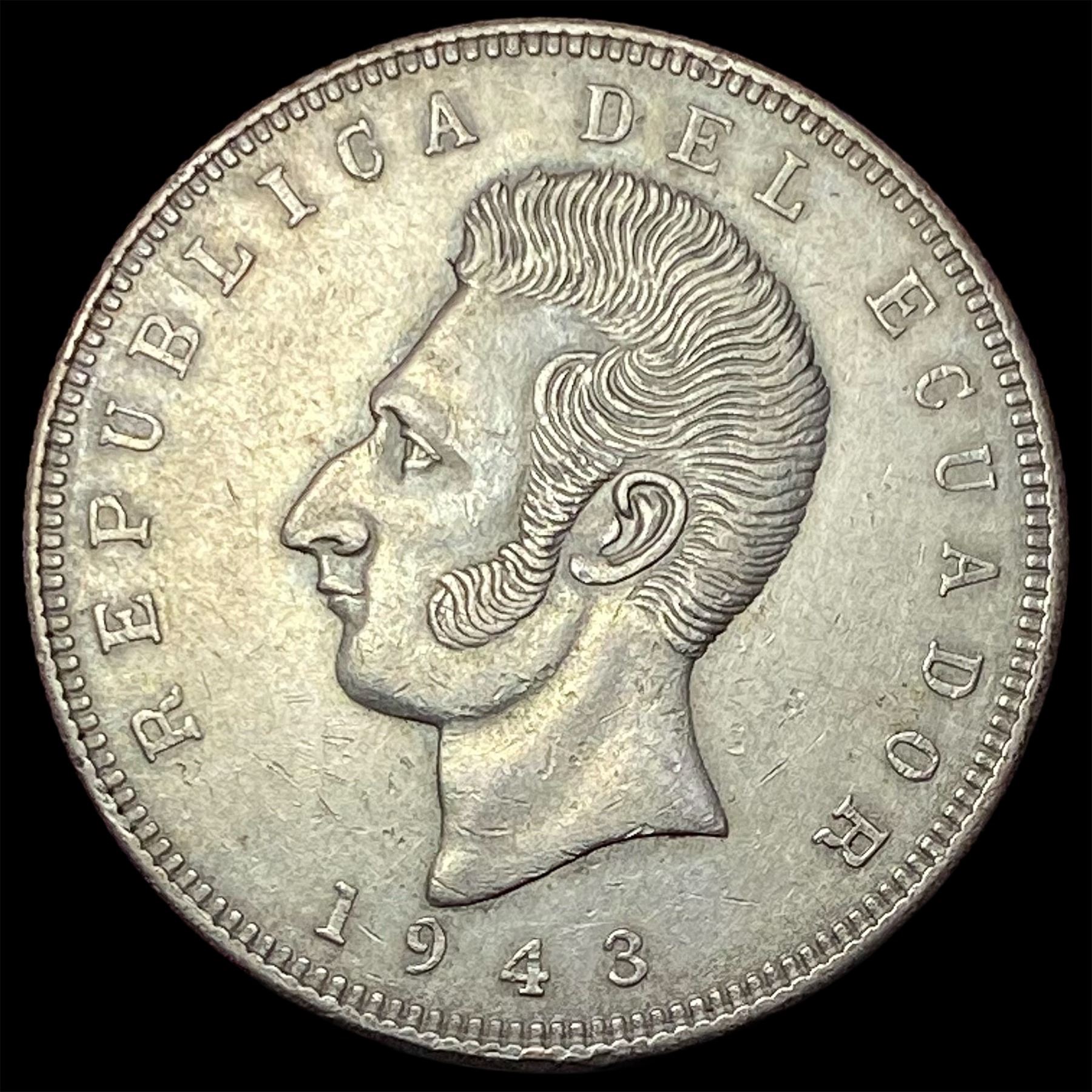 1943-Mo Ecuador Silver 5 Sucres UNCIRCULATED