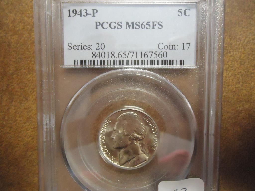 1943-P 35% SILVER JEFFERSON WAR NICKEL PCGS MS65FS