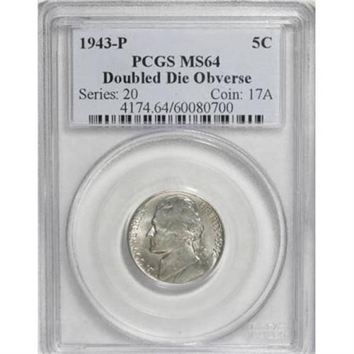 1943-P 5C Doubled Die Obverse MS64 PCGS