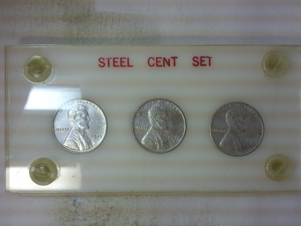 1943-P/D/S LINCOLN STEEL WAR CENTS UNC SET (AS SHO