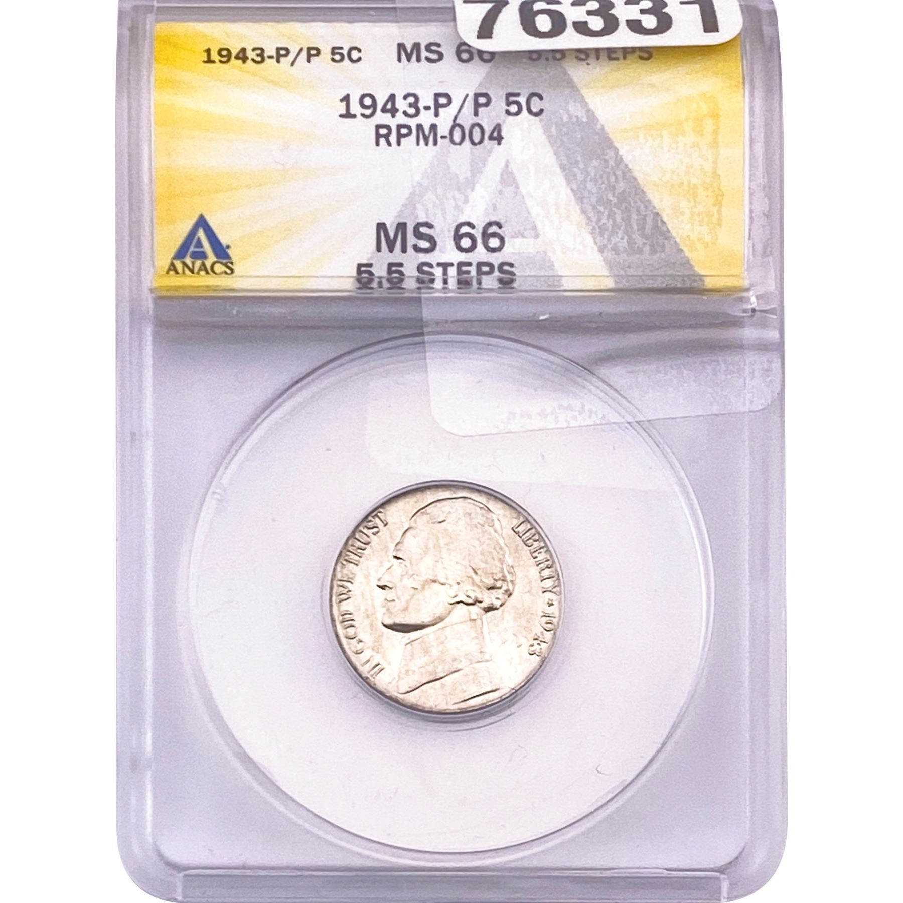 1943-P/P Jefferson Nickel ANACS MS66 5.5 Steps