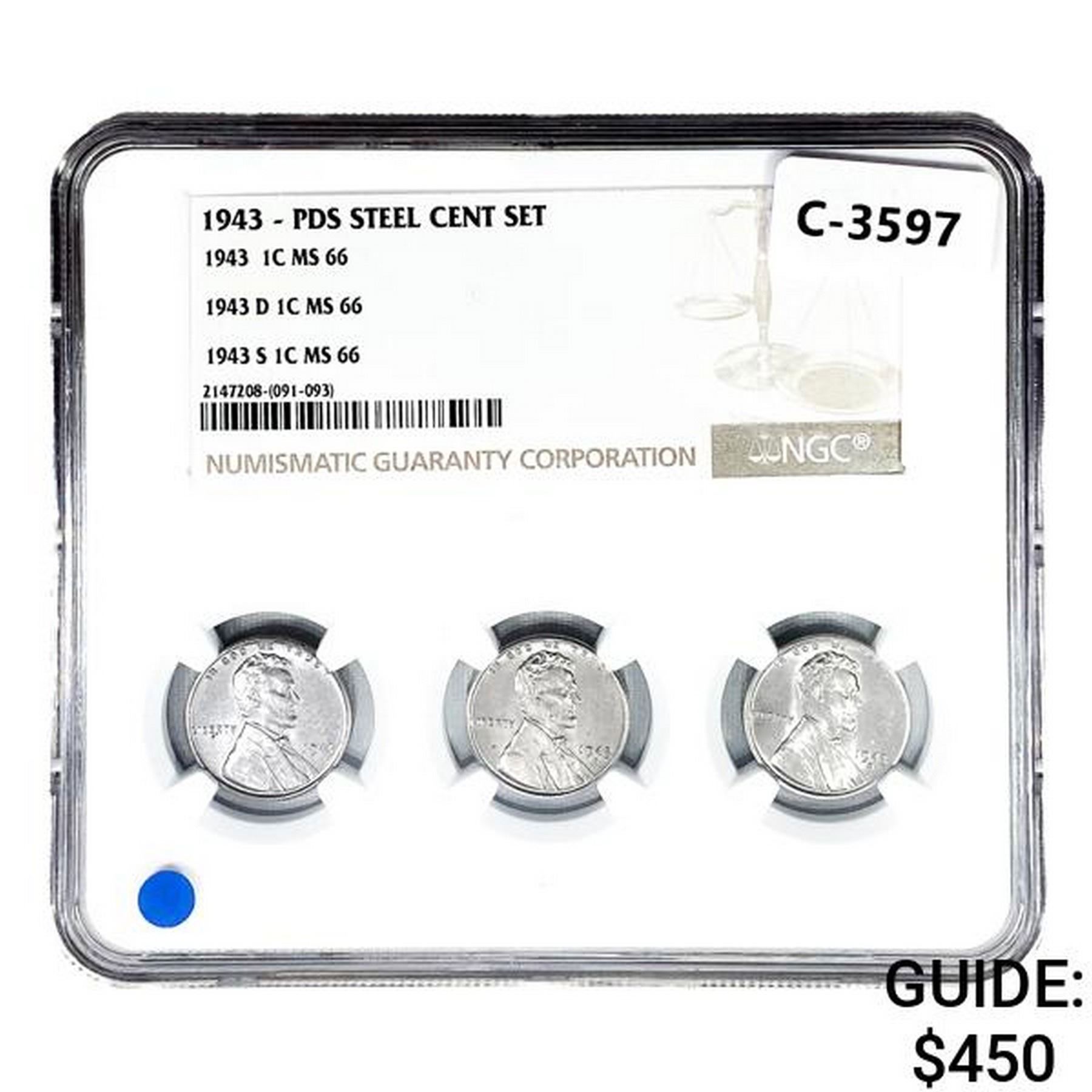 1943 PDS Steel Cent Set NGC MS66 [3 Coins]