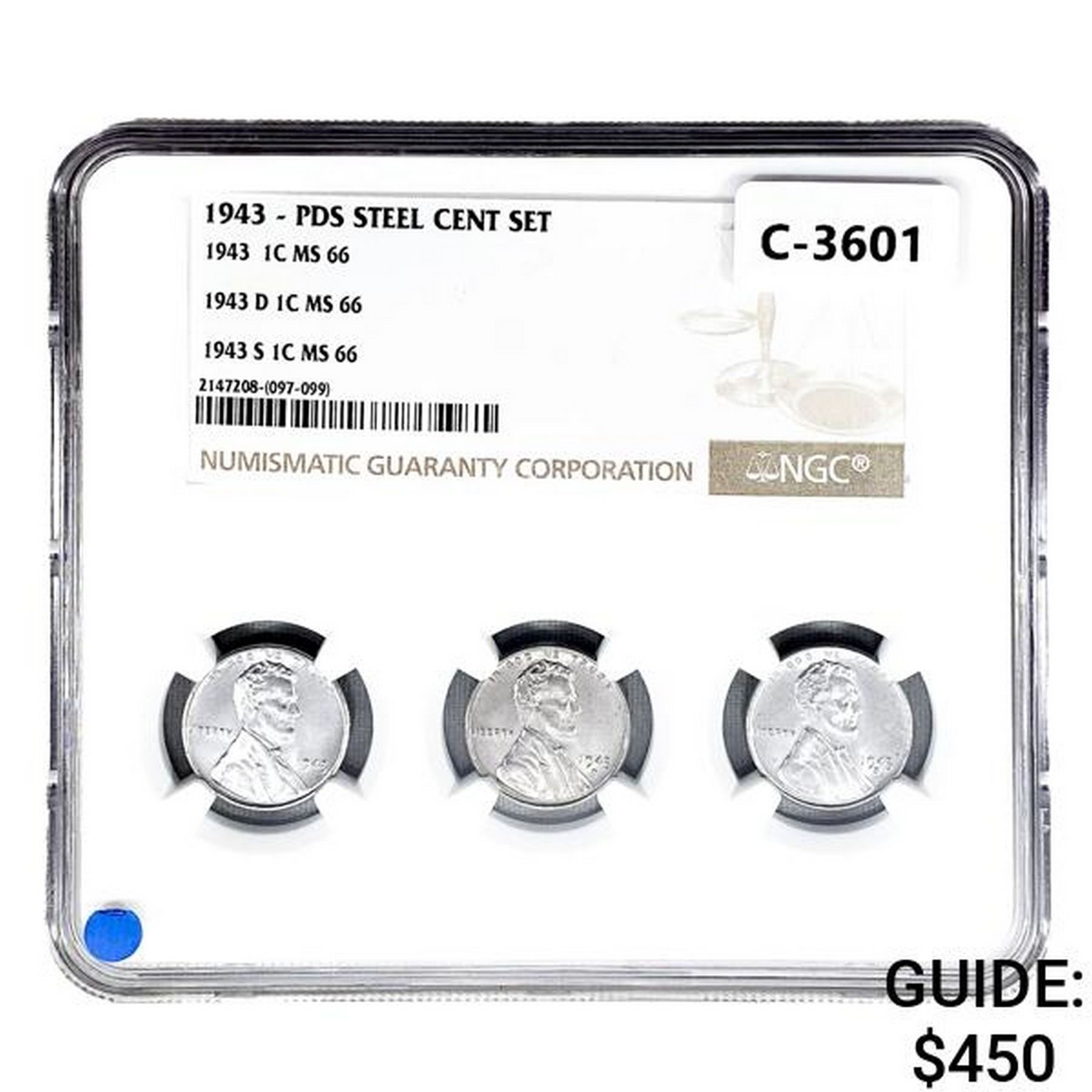 1943 PDS Steel Cent Set NGC MS66 [3 Coins]