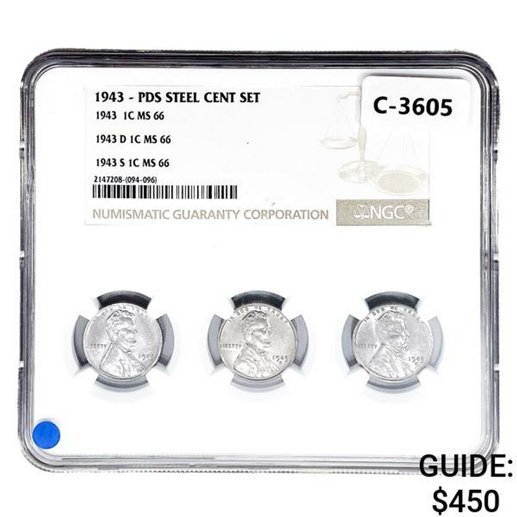1943 PDS Steel Cent Set NGC MS66 [3 Coins]