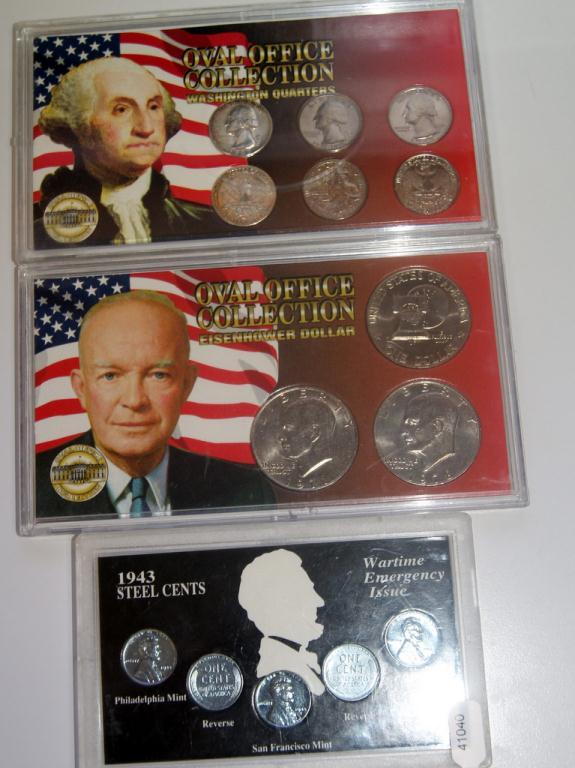 Total Retail $1,050 Being Sold Times Money (#1) Retail Price $340 1943 Steel Cents Wartime Collection Set (#2) Retail Price $390 Oval Office Collection Eisenhower Dollars (#3) Retail Price $320Oval Office Collection Washington Quarters