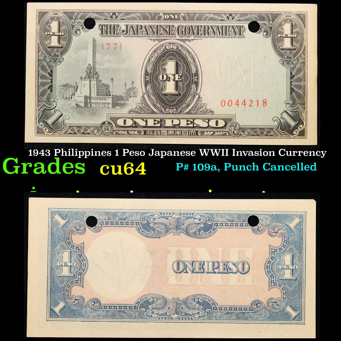1943 Philippines 1 Peso Japanese WWII Invasion Currency Grades Choice CU. Japanese invasion money, officially known as Southern Development Bank Notes (Japanese: ??????? Dai T?-A Sens? gunpy?, "Greater East Asia War military scrip"), was currency issued by the Japanese Military Authority as a replacement for local currency after the conquest of colonies and other states in World War II. Japan printed this currency for many countries, including Malaysia, Singapore, North Borneo, Sarawak, Burma, Brunei, and several Oceania territories controlled by Australia.