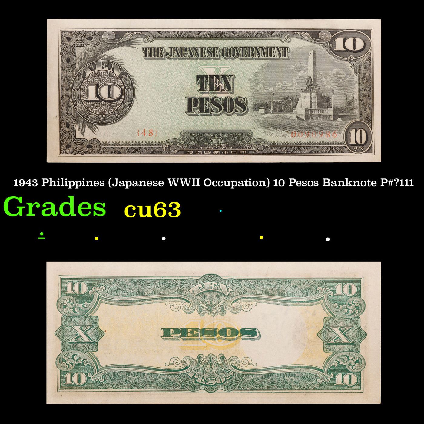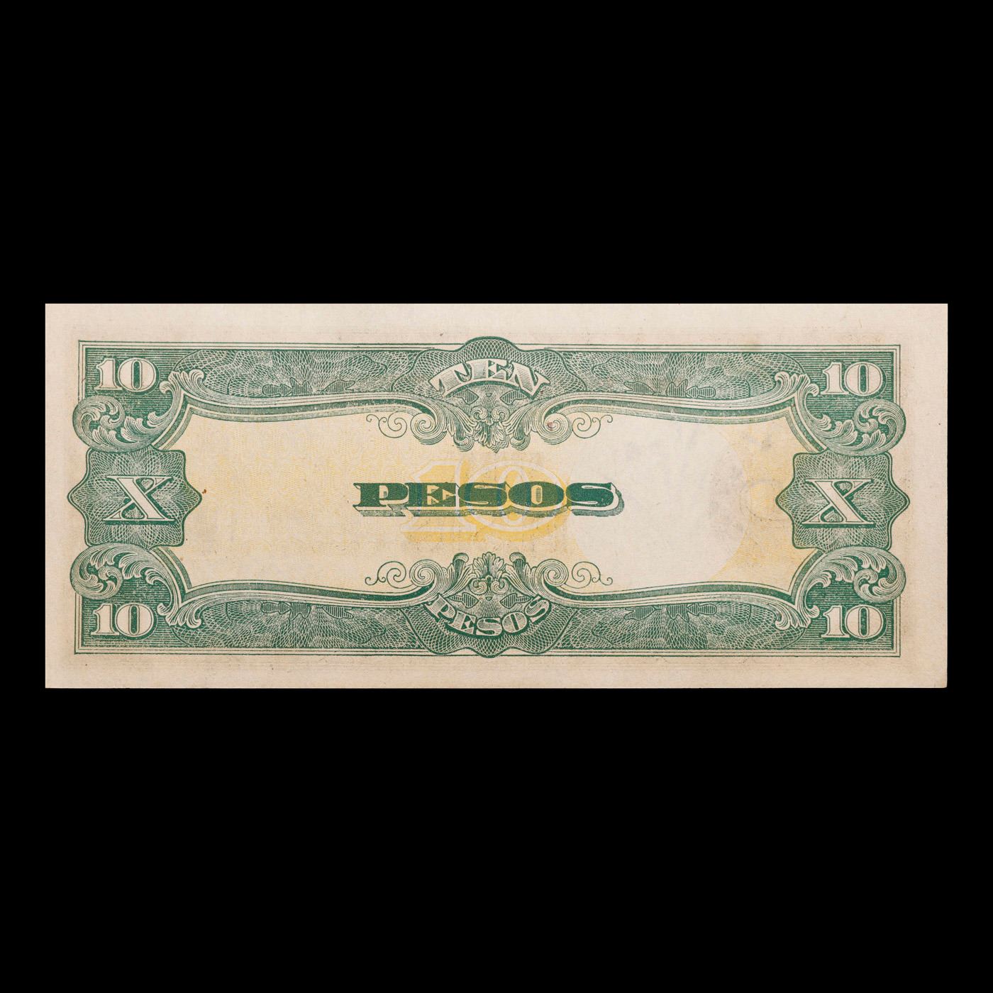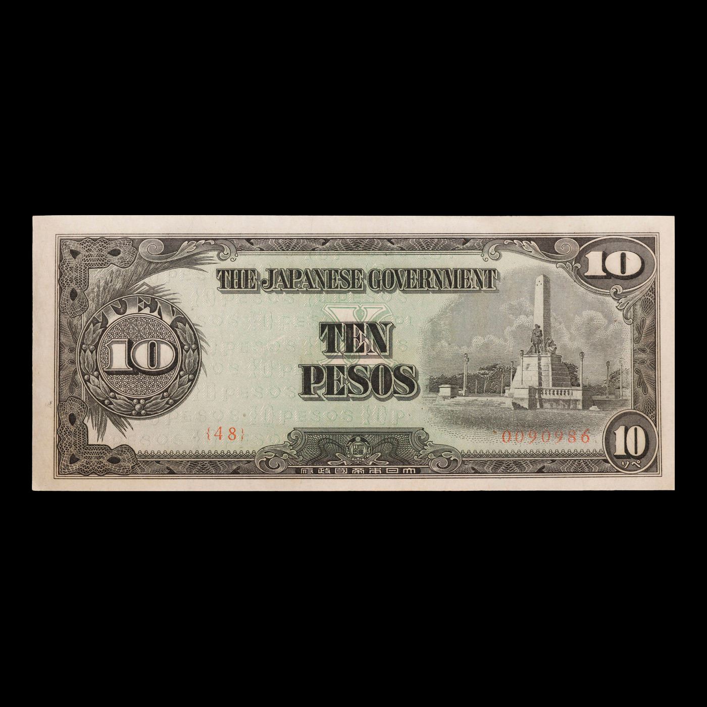 1943 Philippines (Japanese WWII Occupation) 10 Pesos Banknote P#?111 Grades Select CU. Japanese invasion money, officially known as Southern Development Bank Notes (Japanese: ??????? Dai T?-A Sens? gunpy?, "Greater East Asia War military scrip"), was currency issued by the Japanese Military Authority as a replacement for local currency after the conquest of colonies and other states in World War II. Japan printed this currency for many countries, including Malaysia, Singapore, North Borneo, Sarawak, Burma, Brunei, and several Oceania territories controlled by Australia. Some Japanese invasion notes are actually counterfeits produced by the American Office of Strategic Services or the British Special Operations Executive, meant to flood and destabilize the economy in the occupied areas, sometimes also including propaganda printed on the notes themselves.