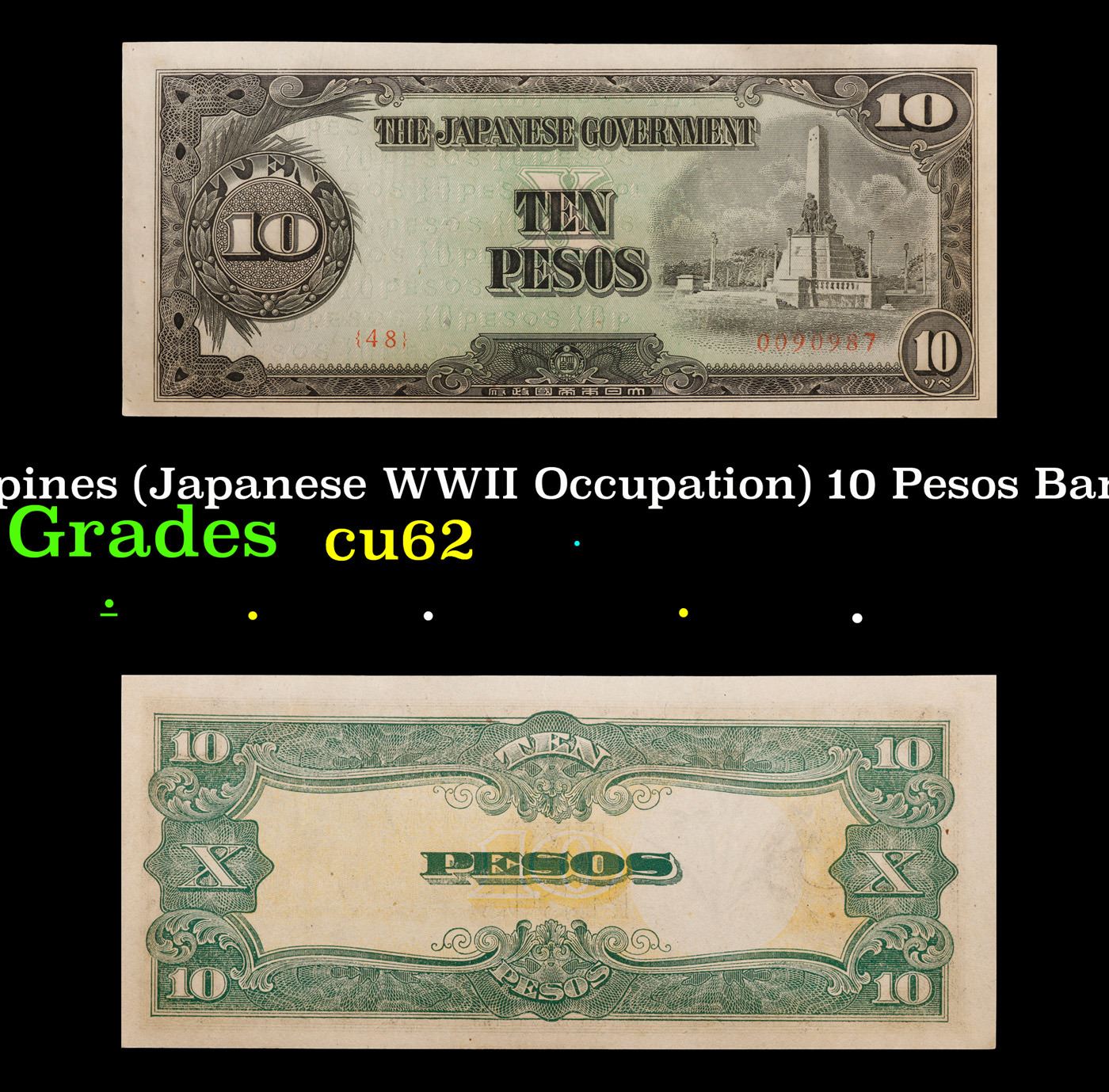 1943 Philippines (Japanese WWII Occupation) 10 Pesos Banknote P#?111 Grades Select CU