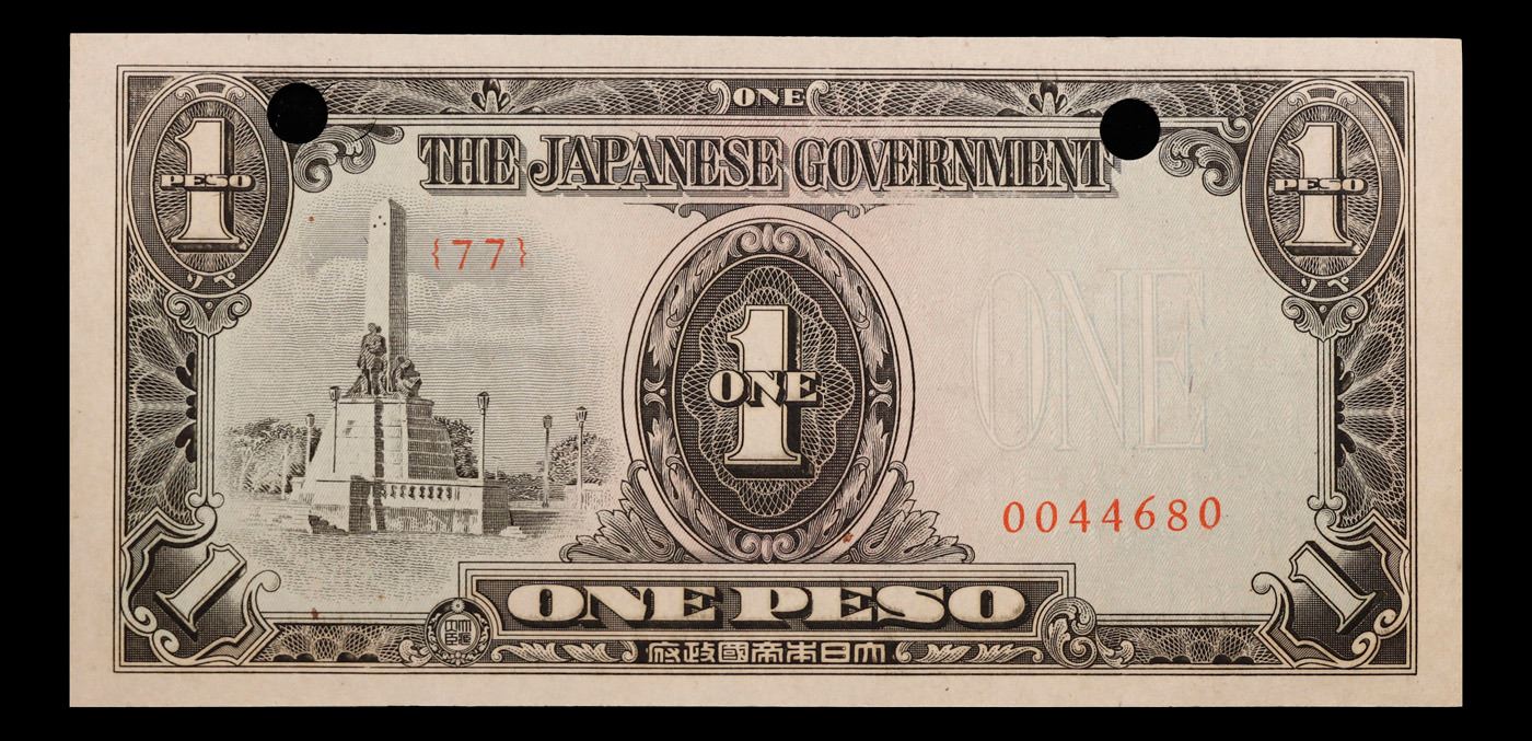 1943 Philippines Under Japanese Occupation 1 Peso Note P: 109A Grades Gem CU. Japanese invasion money, officially known as Southern Development Bank Notes (Japanese: ??????? Dai T?-A Sens? gunpy?, "Greater East Asia War military scrip"), was currency issued by the Japanese Military Authority as a replacement for local currency after the conquest of colonies and other states in World War II. Japan printed this currency for many countries, including Malaysia, Singapore, North Borneo, Sarawak, Burma, Brunei, and several Oceania territories controlled by Australia.