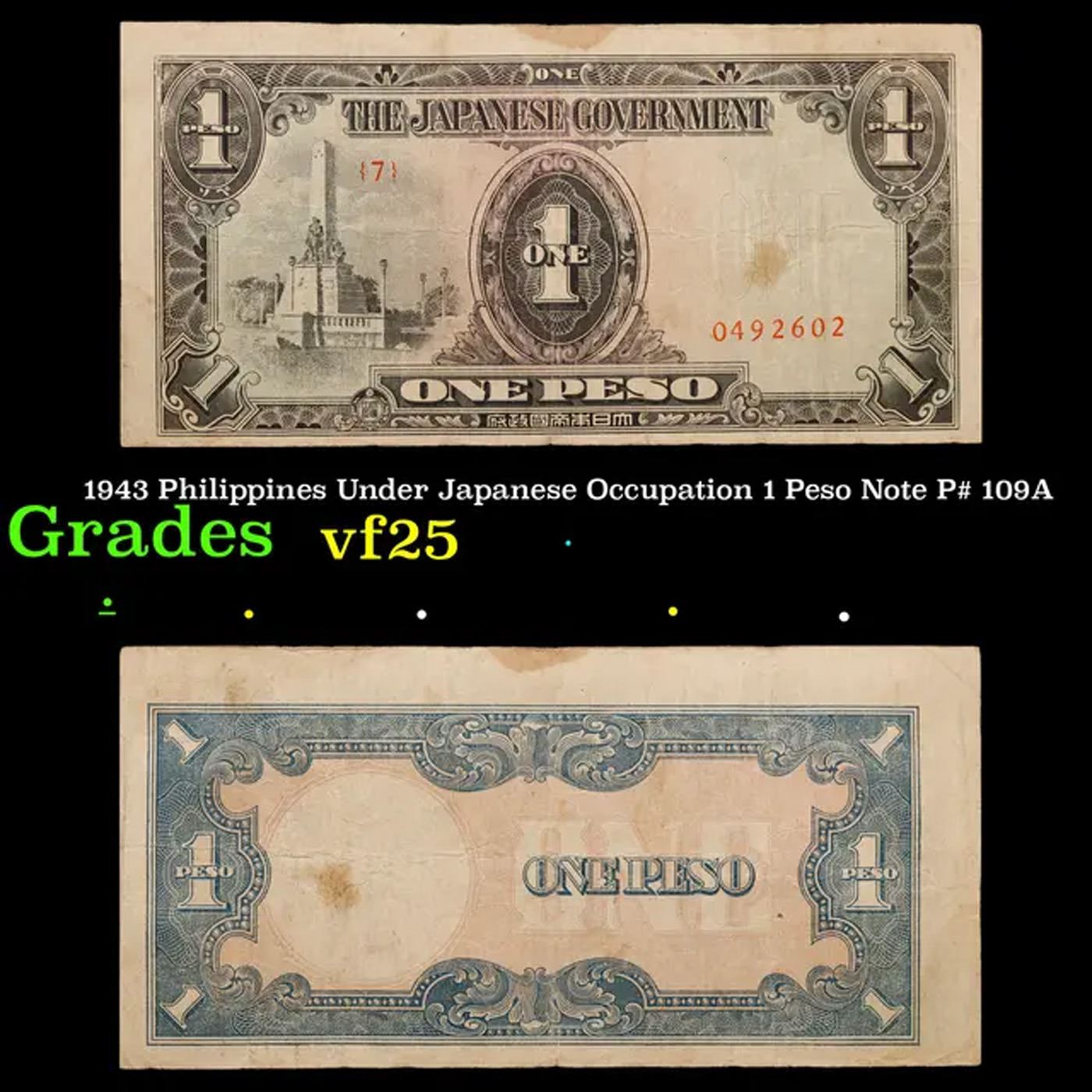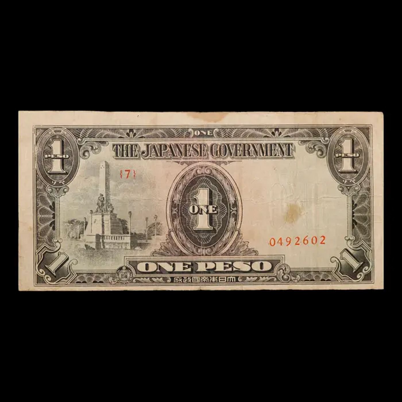 1943 Philippines Under Japanese Occupation 1 Peso Note P# 109A Grades vf+. Japanese invasion money, officially known as Southern Development Bank Notes (Japanese: ??????? Dai T?-A Sens? gunpy?, "Greater East Asia War military scrip"), was currency issued by the Japanese Military Authority as a replacement for local currency after the conquest of colonies and other states in World War II. Japan printed this currency for many countries, including Malaysia, Singapore, North Borneo, Sarawak, Burma, Brunei, and several Oceania territories controlled by Australia.