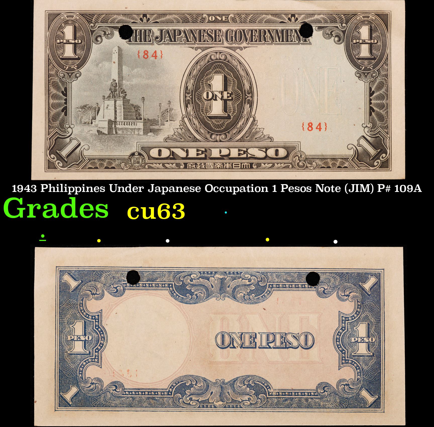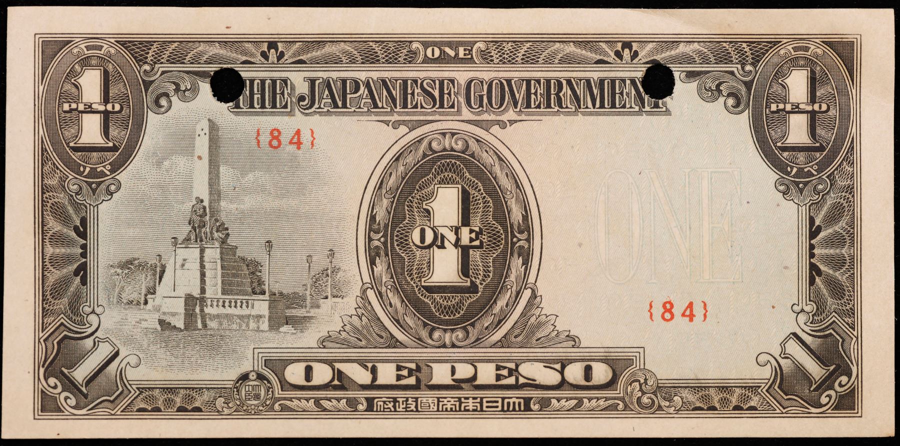 1943 Philippines Under Japanese Occupation 1 Pesos Note (JIM) P# 109A Grades Select CU. Japanese invasion money, officially known as Southern Development Bank Notes (Japanese: ??????? Dai T?-A Sens? gunpy?, "Greater East Asia War military scrip"), was currency issued by the Japanese Military Authority as a replacement for local currency after the conquest of colonies and other states in World War II. Japan printed this currency for many countries, including Malaysia, Singapore, North Borneo, Sarawak, Burma, Brunei, and several Oceania territories controlled by Australia.