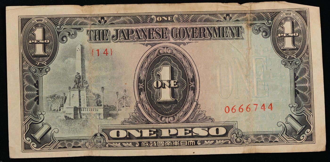 1943 Philippines Under Japanese Occupation 1 peso Note P: 109A Grades vf++.