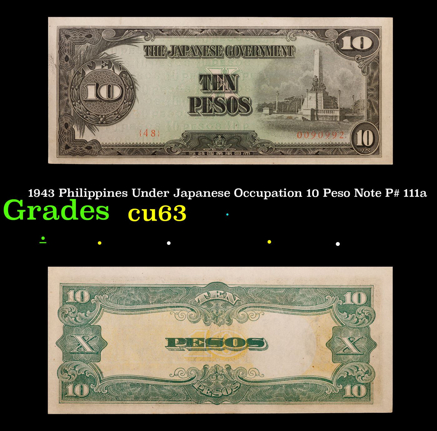 1943 Philippines Under Japanese Occupation 10 Peso Note P# 111a Grades Select CU