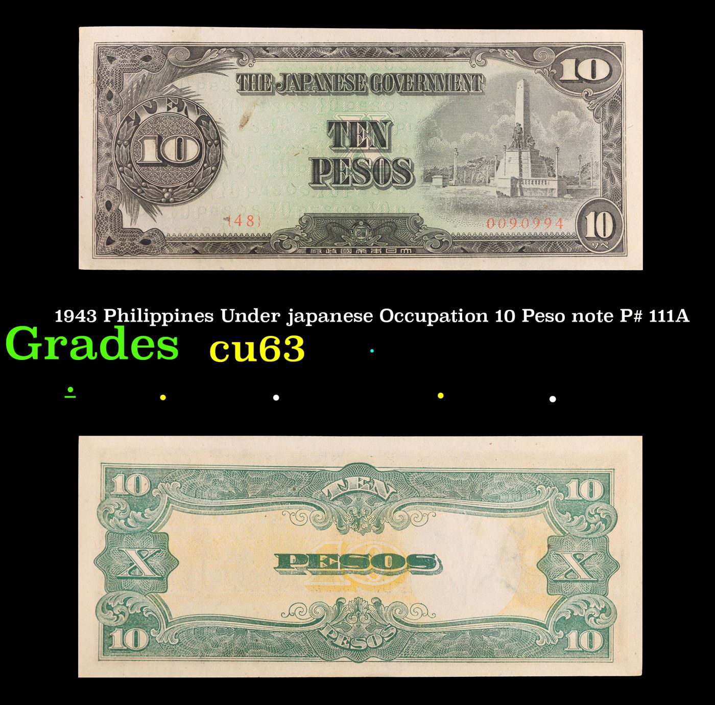 1943 Philippines Under japanese Occupation 10 Peso note P# 111A Grades Select CU. Japanese invasion money, officially known as Southern Development Bank Notes (Japanese: ??????? Dai T?-A Sens? gunpy?, "Greater East Asia War military scrip"), was currency issued by the Japanese Military Authority as a replacement for local currency after the conquest of colonies and other states in World War II. Japan printed this currency for many countries, including Malaysia, Singapore, North Borneo, Sarawak, Burma, Brunei, and several Oceania territories controlled by Australia.