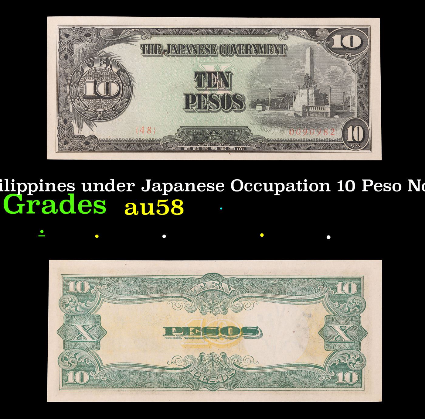 1943 Philippines under Japanese Occupation 10 Peso Note P: 111A Grades Choice AU/BU Slider