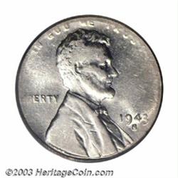 <TR><TD width="100%"><TABLE cellSpacing=1 cellPadding=3 width="100%" border=0><TBODY><TR><TD width="100%" bgColor=#79735c><FONT face=arial color=#ffffff size=3><B>Description</B> </FONT></TD></TR><TR><TD width="100%" bgColor=#ffffff><FONT face=arial size=2><B>1943-S 1C Cent--Struck on 10C Planchet--AU58 PCGS.</B></I> Since a Dime planchet was too small to completely fill the Cent dies, weakness of strike is noted on the borders and highpoints. Lincoln's coat has only light friction. Brilliant and relatively unabraded, and with most of its original luster. The magic date of 1943, famous for its rare bronze alloy errors, lends further interest to this other wrong planchet combination. </FONT></TD></TR></TBODY></TABLE></TD></TR></TBODY></TABLE><BR><A name=PricesRealized></A><TABLE cellSpacing=0 cellPadding=0 width="100%" bgColor=#000000 border=0><TBODY><TR><TD width="100%"><TABLE cellSpacing=1 cellPadding=3 width="100%" border=0><TBODY><TR><TD width="100%" bgColor=#79735c><A name=PR><FONT face=arial color=#ffffff size=3><B>Previous Prices from Heritage Auctions</B> </FONT></A></TD></TR><TR><TD bgColor=#f6f6ed><TABLE cellSpacing=0 cellPadding=0 width="100%" border=1><TBODY><TR><TD align=middle width="33%"><B>Date</B></TD><TD align=middle width="33%"><B>Service</B></TD><TD align=middle width="33%"><B>Price</B></TD></TR><TR bgColor=whitesmoke><TD width="33%"><B>06/01/1997</B></TD><TD width="33%">ANACS</TD><TD width="33%">$49,500.00</TD></TR></TBODY></TABLE></TD></TR><TR><TD bgColor=#ffffff><FONT face=arial size=1 ?>PLEASE NOTE: All prices realized reflect the final hammer price PLUS the buyer's premium in auctions that charge a buyer's premium. Each item has a notation at the top of the listing indicating whether that lot included a buyer's premium. Example: A item that sells with a final hammer price of $100 and a 20% buyer's premium will display with a price realized of $120. All information listed is intended to be as accurate as possible, but errors are possible. Please use this guide carefully and inform us of any inaccuracies. </FONT></TD></TR></TBODY></TABLE></TD></TR></TBODY></TABLE><BR><TABLE cellSpacing=0 cellPadding=0 width="100%" bgColor=#000000 border=0><TBODY><TR><TD width="100%"><TABLE cellSpacing=1 cellPadding=3 width="100%" border=0><TBODY><TR><TD width="100%" bgColor=#79735c colSpan=6><FONT face=arial color=#ffffff size=3><B>Price Guide*</B> </FONT></TD></TR><TR bgColor=#f6f6ed><TD align=middle><B>Grade</B> </TD><TD align=middle><B>Coin World<BR>(Trends)</B> </TD><TD align=middle><B>Numismedia<BR>Retail</B> </TD><TD align=middle><B>Numismedia<BR>Wholesale</B> </TD><TD align=middle><B>Coin<BR>Universe</B> </TD><TD align=middle><B>Heritage<BR>Value Index</B> </TD></TR><TR bgColor=#ffffff><TD align=middle>55</TD><TD align=right>---</TD><TD align=right>---</TD><TD align=right>---</TD><TD align=right>---</TD><TD align=right>$2.88</TD></TR><TR style="FONT-WEIGHT: bold" bgColor=#cccfdd><TD align=middle>58</TD><TD align=right>---</TD><TD align=right>---</TD><TD align=right>---</TD><TD align=right>---</TD><TD align=right>$3.09</TD></TR><TR bgColor=#ffffff><TD align=middle>60</TD><TD align=right>$2.00</TD><TD align=right>$1.00</TD><TD align=right>$1.00</TD><TD align=right>---</TD><TD align=right>$3.23</TD></TR><TR bgColor=#ffffff><TD colSpan=6><FONT size=1>*All information listed is intended to be as accurate as possible, but errors are possible. No item may be returned or refused based on this information which is provided as a service to our customers. You should contact each pricing source directly to determine the accuracy of this information. </FONT></TD></TR></TBODY></TABLE></TD></TR></TBODY></TABLE><BR><TABLE cellSpacing=0 cellPadding=0 width="100%" bgColor=#000000 border=0><TBODY><TR><TD width="100%"><TABLE cellSpacing=1 cellPadding=3 width="100%" border=0><TBODY><TR><TD width="100%" bgColor=#79735c><FONT face=arial color=#ffffff size=3><B>Population Guide</B> </FONT></TD></TR><TR bgColor=#ffffff><TD align=middle><!-- Begin Output of Population Grid--><TABLE cellSpacing=0 cellPadding=0 width="100%" border=0><TBODY><TR><TD vAlign=center><TABLE cellSpacing=0 width="100%" border=1 cellsadding="3"><TBODY><TR><TD vAlign=center><TABLE cellSpacing=0 cellPadding=3 width="100%" border=1><TBODY><TR><TD vAlign=center align=middle bgColor=#f0f1e8 colSpan=2 <CENTER><FONT face=Arial size=2><B>PCGS Pop </B></FONT><CENTER></CENTER></TD><TD vAlign=center align=middle bgColor=#f0f1e8 colSpan=2><CENTER><FONT face=Arial size=2><B>NGC Pop</B></CENTER></FONT></TD></TR><TR><TD vAlign=center><FONT face=Arial size=2>(58)</FONT> </TD><TD vAlign=center align=right><FONT face=Arial size=2>3</FONT> </TD><TD vAlign=center><FONT face=Arial size=2>(58)</FONT> </TD><TD vAlign=center align=right><FONT face=Arial size=2>0</FONT> </TD></TR><TR><TD vAlign=center><FONT face=Arial size=2>(>58)</FONT> </TD><TD vAlign=center align=right><FONT face=Arial size=2>3151</FONT> </TD><TD vAlign=center><FONT face=Arial size=2>(>58)</FONT> </TD><TD vAlign=center align=right><FONT face=Arial size=2>3439</FONT> </TD></TR></TBODY></TABLE></TD></TR></TBODY></TABLE></TD></TR></TBODY></TABLE><!-- End Output of Population Grid--></TD></TR></TBODY></TABLE></TD></TR></TBODY></TABLE><BR><TABLE cellSpacing=0 cellPadding=0 width="100%" bgColor=#000000 border=0><TBODY><TR> Important notice: We expect to be auctioning lots at the rate of 200-250 per hour. On occasion eBay live bid software cannot keep up with the pace of the auctions where 4-5 lots per minute can hammer down, so we recommend that you place a realistic absentee bid now as insurance to avoid disappointment. Also please note that all Heritage/CAA lots purchased through eBay Live carry a 20% Buyer's Premium. Please make sure you read the Terms and Conditions.