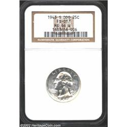 1943-S 25C Doubled Die MS64 W NGC. FS-17. A popular Guide Book variety that features boldly doubled.