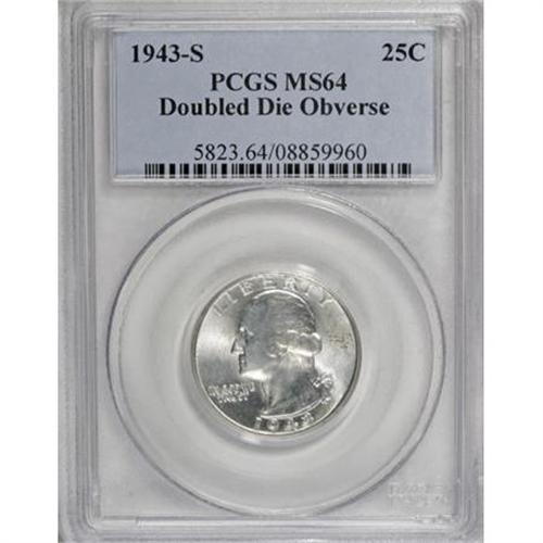 <B>1943-S 25C Doubled Die Obverse MS64 PCGS.</B></I> FS-101, formerly FS-017. A minimally toned and strongly lustrous near-Gem example of this popular <I>Guide Book</B></I> doubled die, plainest on the date and IN GOD WE TRUST. The faintly frosted reverse reveals a hint of soft detail. Population: 46 in 64, 19 finer (8/07).<BR><BR><B>Coin Engraver:</B> John Flanagan<BR><BR><b>Shipping:</b> Coins & Currency (<a target="_blank" href="http://www.heritageauctions.com/common/shipping.php">view shipping information</a>)