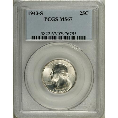 1943-S 25C MS67 PCGS. Booming luster sweeps this smoot