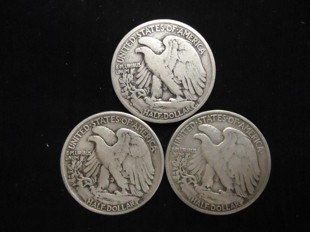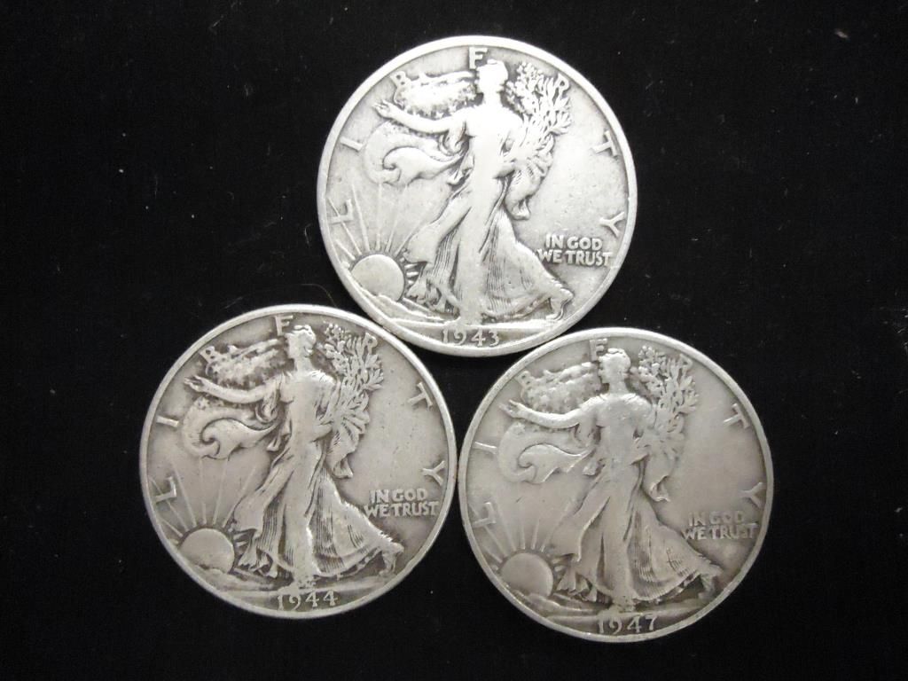 1943-S,44 & 47-D WALKING LIBERTY HALF DOLLARS
