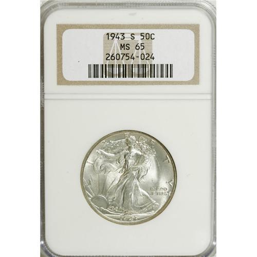1943-S 50C MS65 NGC. NGC Census: (1277/245). PCGS